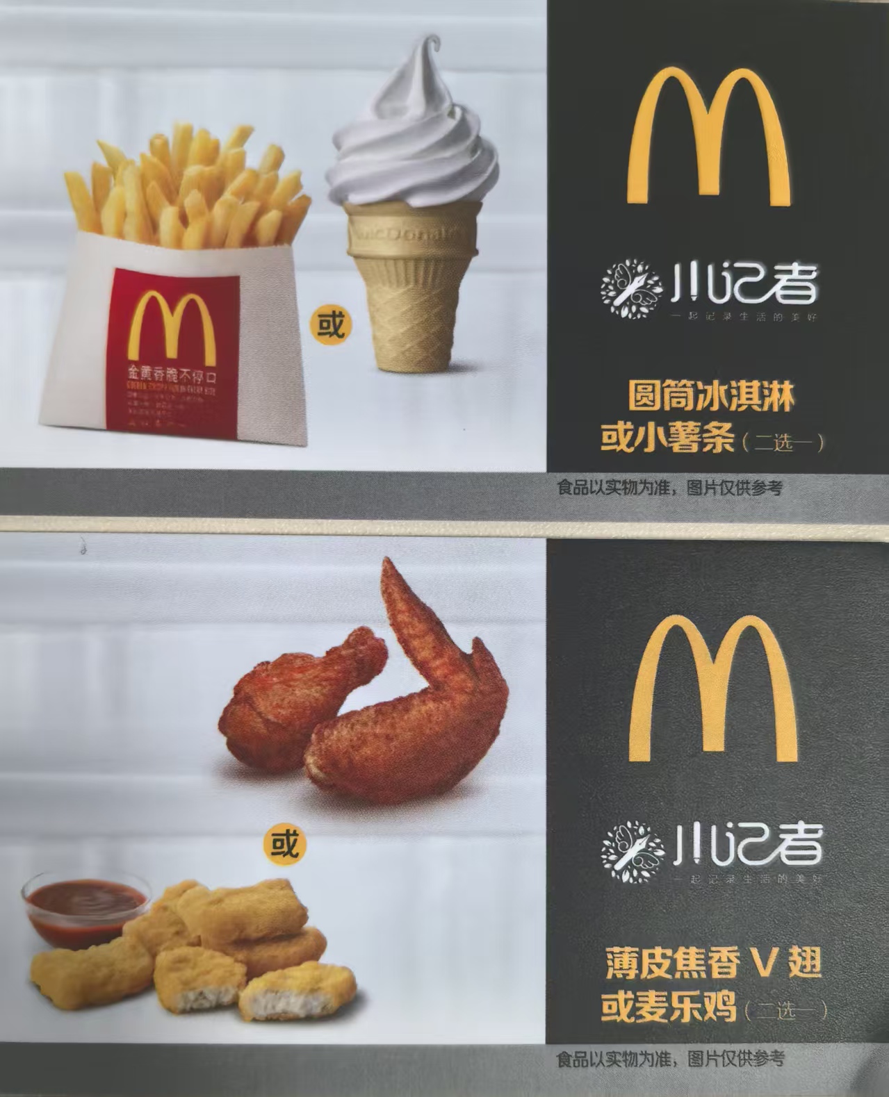 本次活动为激发小记者创作热情而特别设立。小记者可从薄皮焦香V翅或麦乐鸡中任选一款,同时还可搭配圆筒冰淇淋或小薯条,组成专属美味组合。