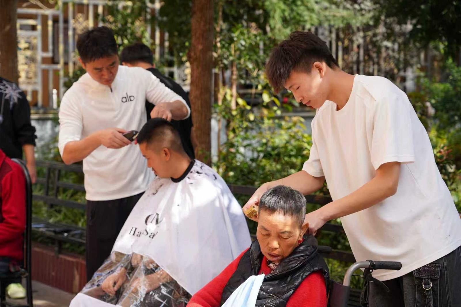 秋日的早晨,昆明市官渡区矣六敬老院里暖意融融,一群爱心理发师来到敬老院里,给老年人们理发,欢声笑语之间老人们换上了新发型。