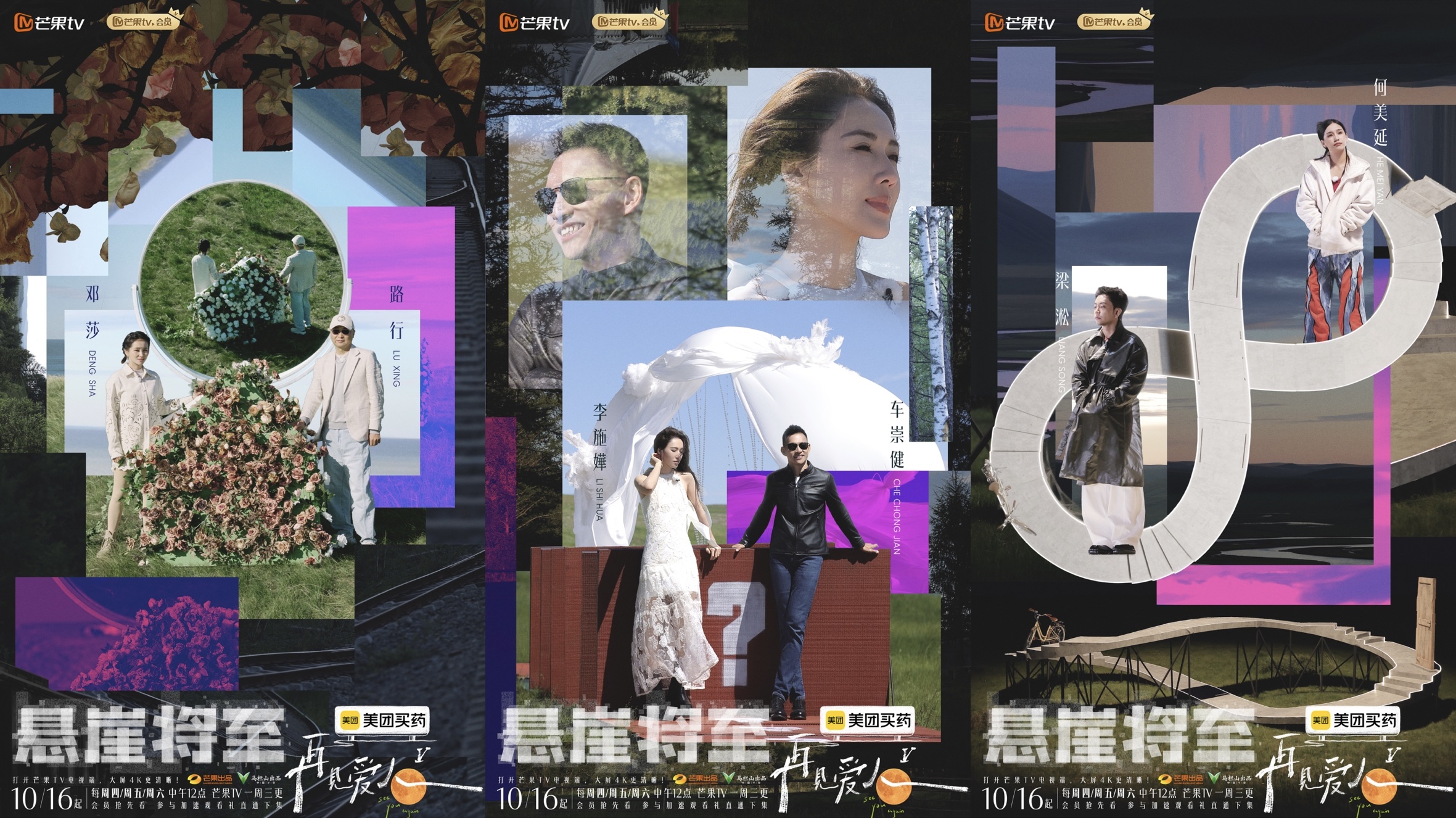 婚姻纪实观察真人秀《再见爱人5》官宣定档10月16日,三对爱人邓莎与路行、李施嬅与车崇健、何美延与梁淞将从象征关系困局的“悬崖”启程,开启为期18天的“求解之旅”。经年累月的风霜堆积成悬崖上的褶皱,18天的朝夕相对过后,他们会再度成为爱人,还是在旅途终点和彼此说再见?