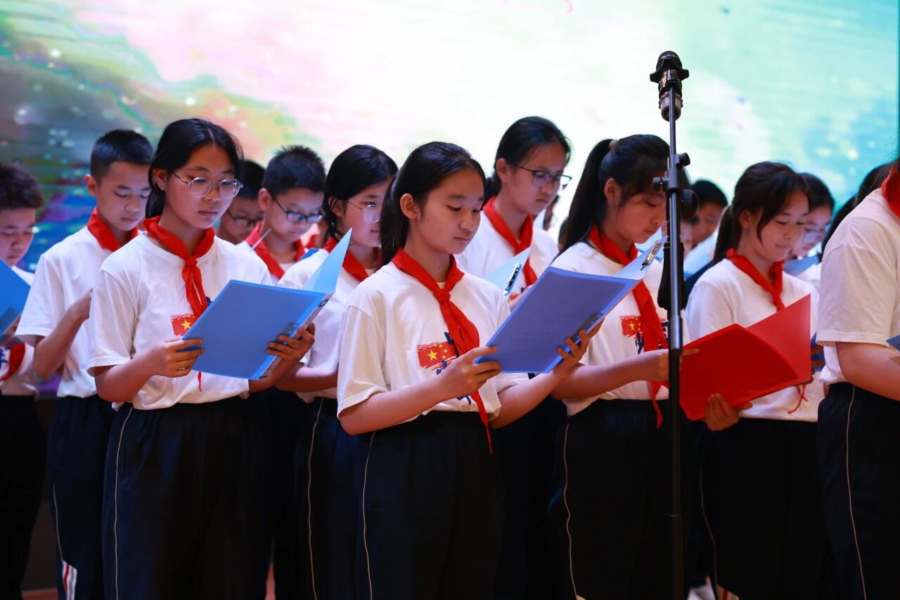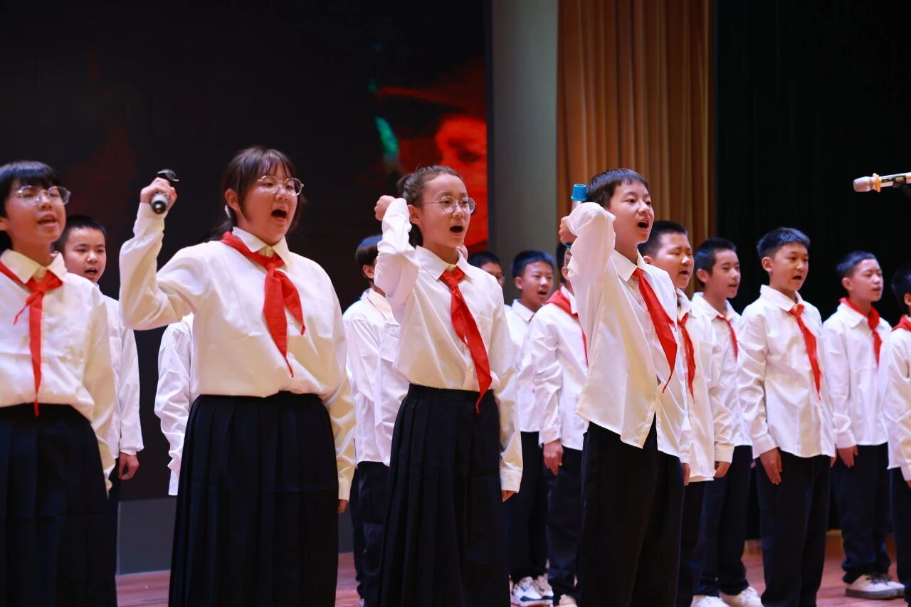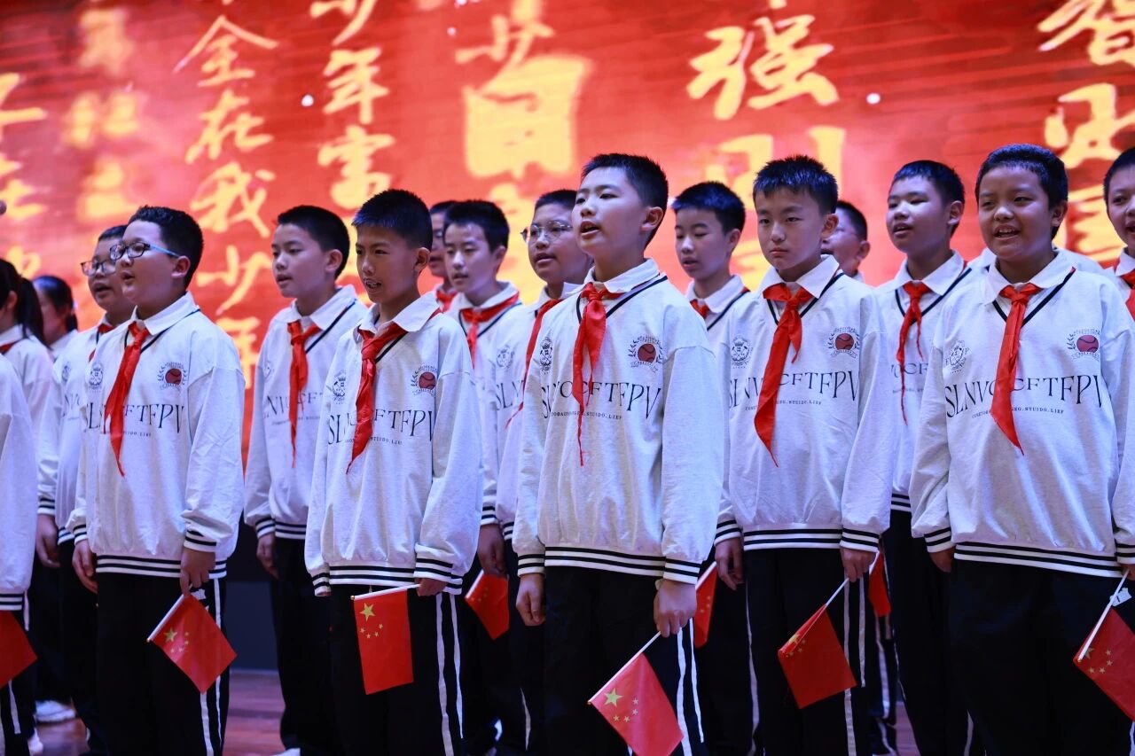 透过历史的眼眸,我们站在岁月的肩膀上远眺。同学们以朝气蓬勃的神态诵读经典。他们的声音时而沉稳如历史回响,时而激昂似时代号角,将《少年中国说》中的豪情与期许演绎得淋漓尽致,尽显中国少年风采。