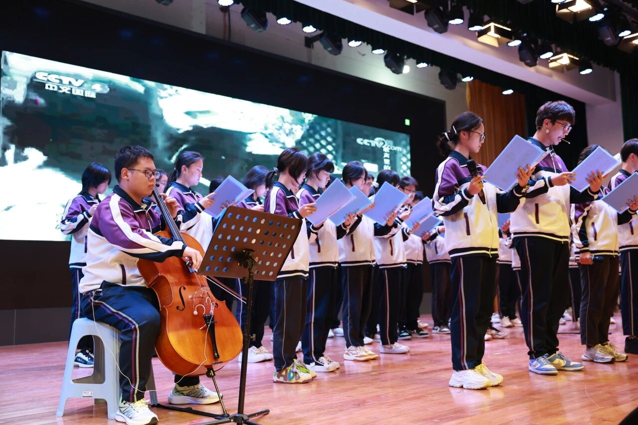 同学们以温柔真挚的语调演绎《致春竹》。他们的声音里满是对集体的眷恋与对师长的敬意,时而轻柔如竹影摇曳,时而坚定似竹节挺拔,让人心感受到这份温暖与力量。