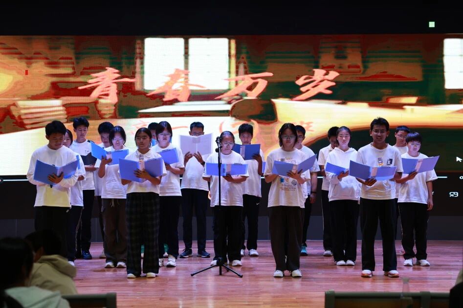 同学们以青春昂扬的神态,通过领诵与合诵的巧妙交织演绎诗篇。他们的声音里既有成长的思索,又有逐梦的热忱,每一段诵读都饱含对生活的热爱与对时代的回应,尽显少年锐气。