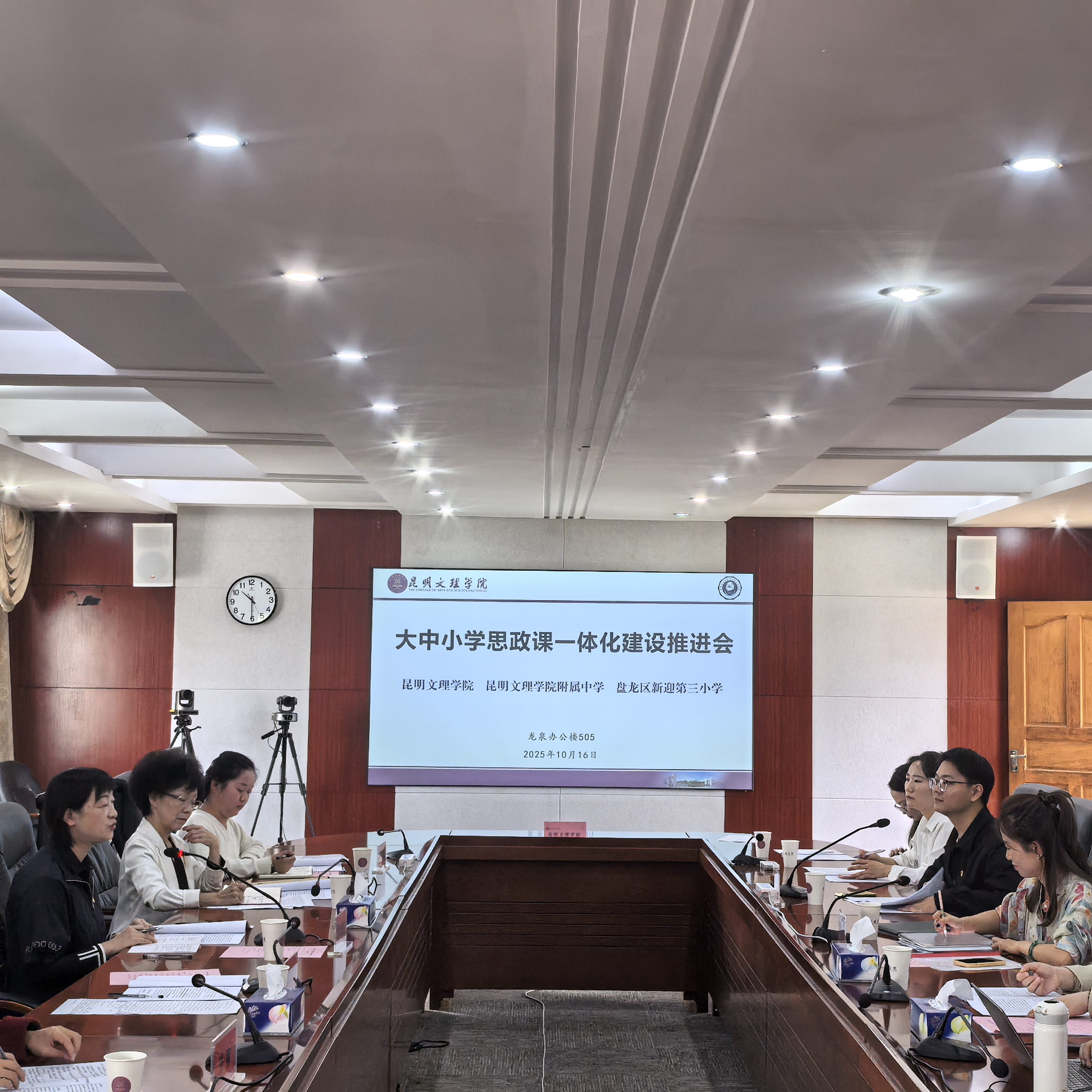 经积极筹备,由昆明文理学院统筹领衔,昆明文理学院马克思主义学院、昆明文理学院附属中学及盘龙区新迎第三小学结成思政教育一体化建设联盟合作单位,近日召开推进会,探讨思政教育资源整合、教学协同推进的具体路径。