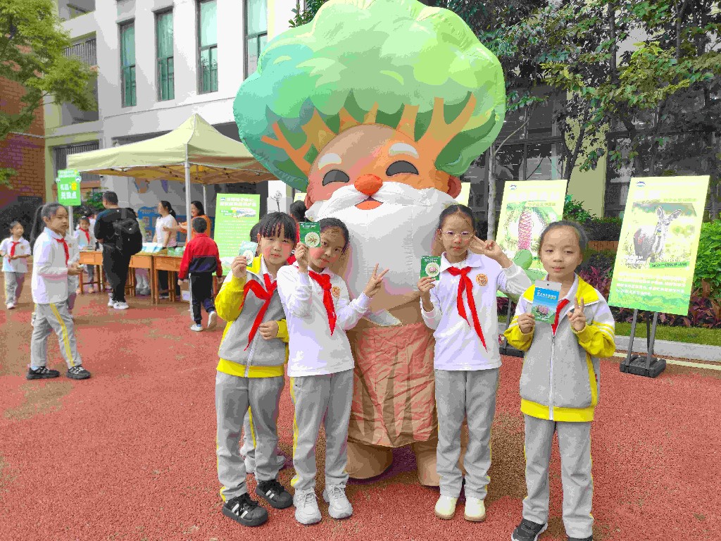 当天下午,一场生态游园会在龙翔小学操场上演。现场设立的科普展板图文并茂,生动展示出轿子山国家级自然保护区的生态地貌、珍稀物种与生态保护成果,吸引众多师生驻足观看。昆明市林业和草原局打造的昆明市古树名木文化IP“古树爷爷”与“古树奶奶”惊喜亮相,更是点燃了全场互动热情,将活动推向高潮。在轻松愉悦的氛围中,生态保护理念悄然浸润童心,切实增强了学生们的生态文明意识。