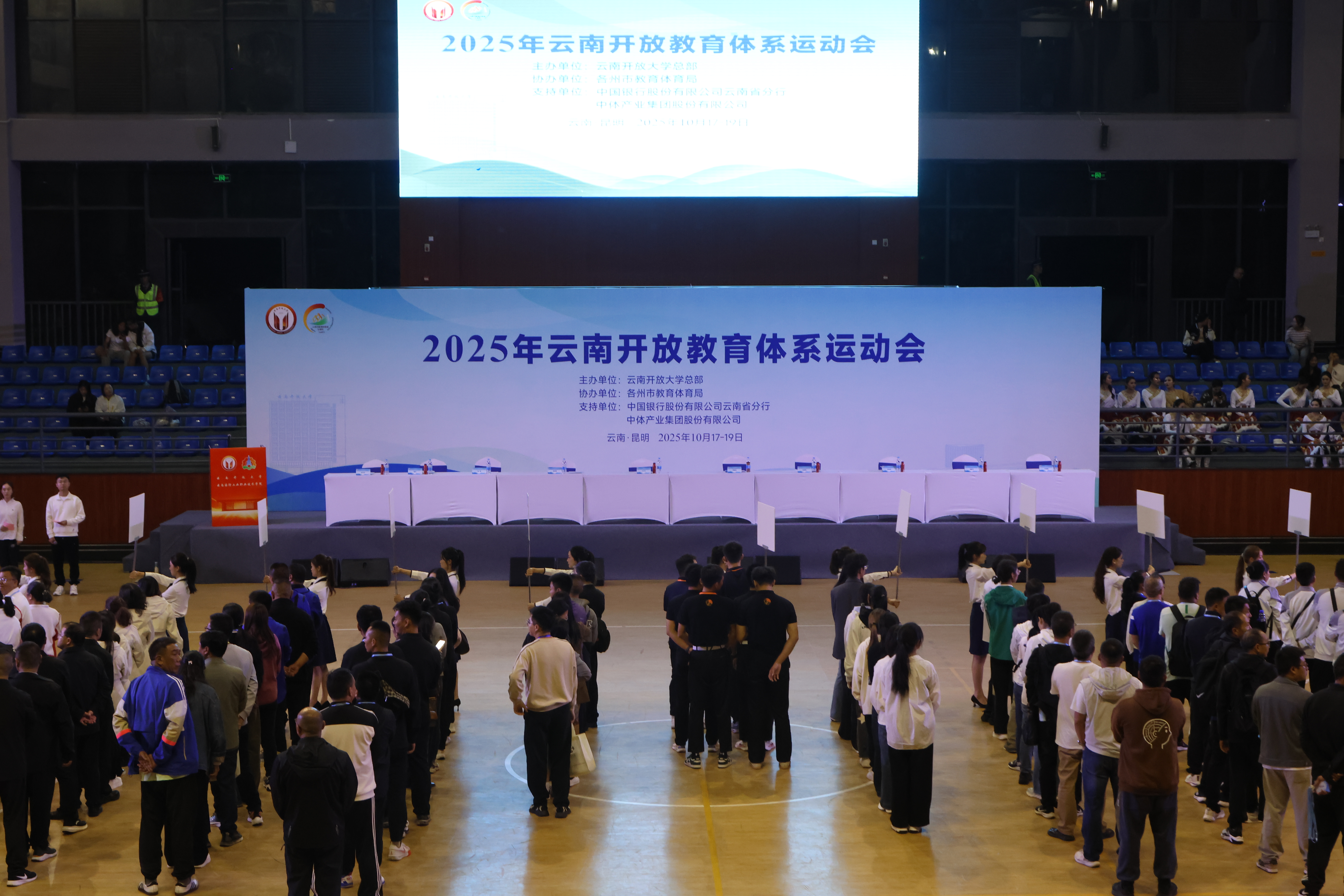 2025年10月17日,以“体育促发展 团结共奋进”为主题的2025年云南省开放教育体系运动会,在云南开放大学呈贡校区体育场拉开帷幕。省体育产业中心主任苏向东,省老干部活动中心副主任周恩平等嘉宾,云南开放大学党委书记罗国权、校长于干千等在校领导班子成员及师生代表共同出席开幕式。