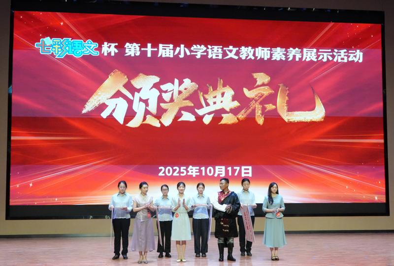 全国小学语文教师素养展示活动两年举行一届,历经十届已成为全国小语界影响巨大的专业盛事。本次活动全国遴选出的30位优秀教师同台竞技。比赛设置朗读展示、书写展示、才艺表演、课堂教学展示、知识素养现场答题五大板块,全方位考验教师综合能力——从随机抽取 500 字课文限时准备朗读,现场完成粉笔字书写,再到覆盖教育学、历史地理文学常识、语文课标、语文教材及教学等领域的知识答题,每一项都对选手的专业功底与应变能力提出高要求。特别是30分钟的课堂教学展示从抽题到展示,只有24小时准备时间,王炜琪老师执教《祖父的园子》,通过结构化的课堂环节设计,一个核心问题,两条主线,四个同样的问题在阅读中对比探究,层层推进,引导学生自己走过从“感知景物”到“体会人情”再到“领悟情理”。课堂中教师思路清晰、关注学生语言文字运用能力的习得和运用,学生主动学悟、生成精彩,现场多次响起听课教师自发的掌声,网络直播好评不断,成为了最闪亮的赛场风景。