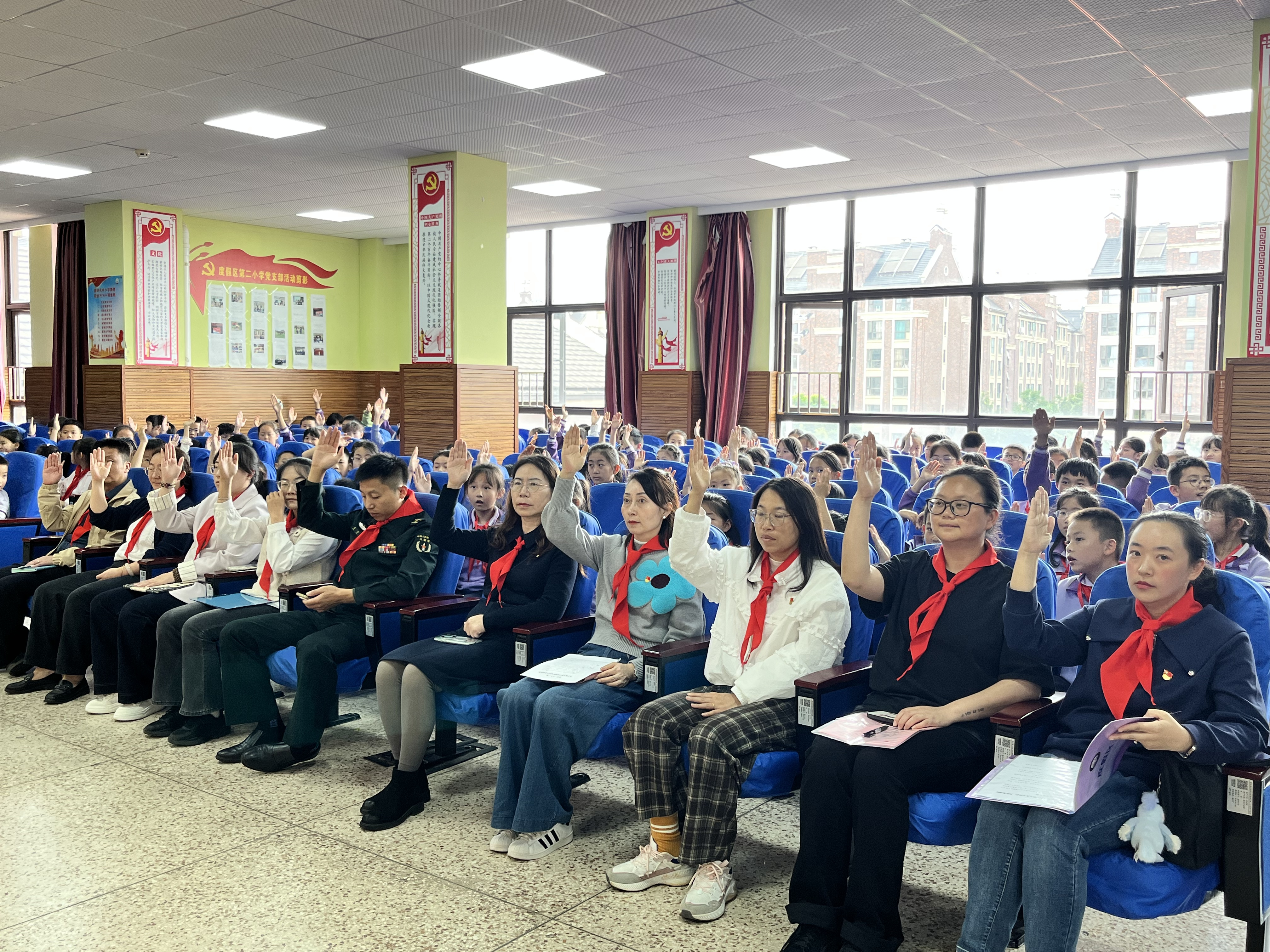 在第二次全体会议中,学校少工委副主任吕瑜做小提案集中答复。会议表决通过度假区第二小学少工委2024学年工作报告,宣读学校第五届少先队大队委成员名单并举行宣誓,宣布了新当选的度假区第二小学第五届少工委成员名单并为第五届少工委委员颁发聘书。