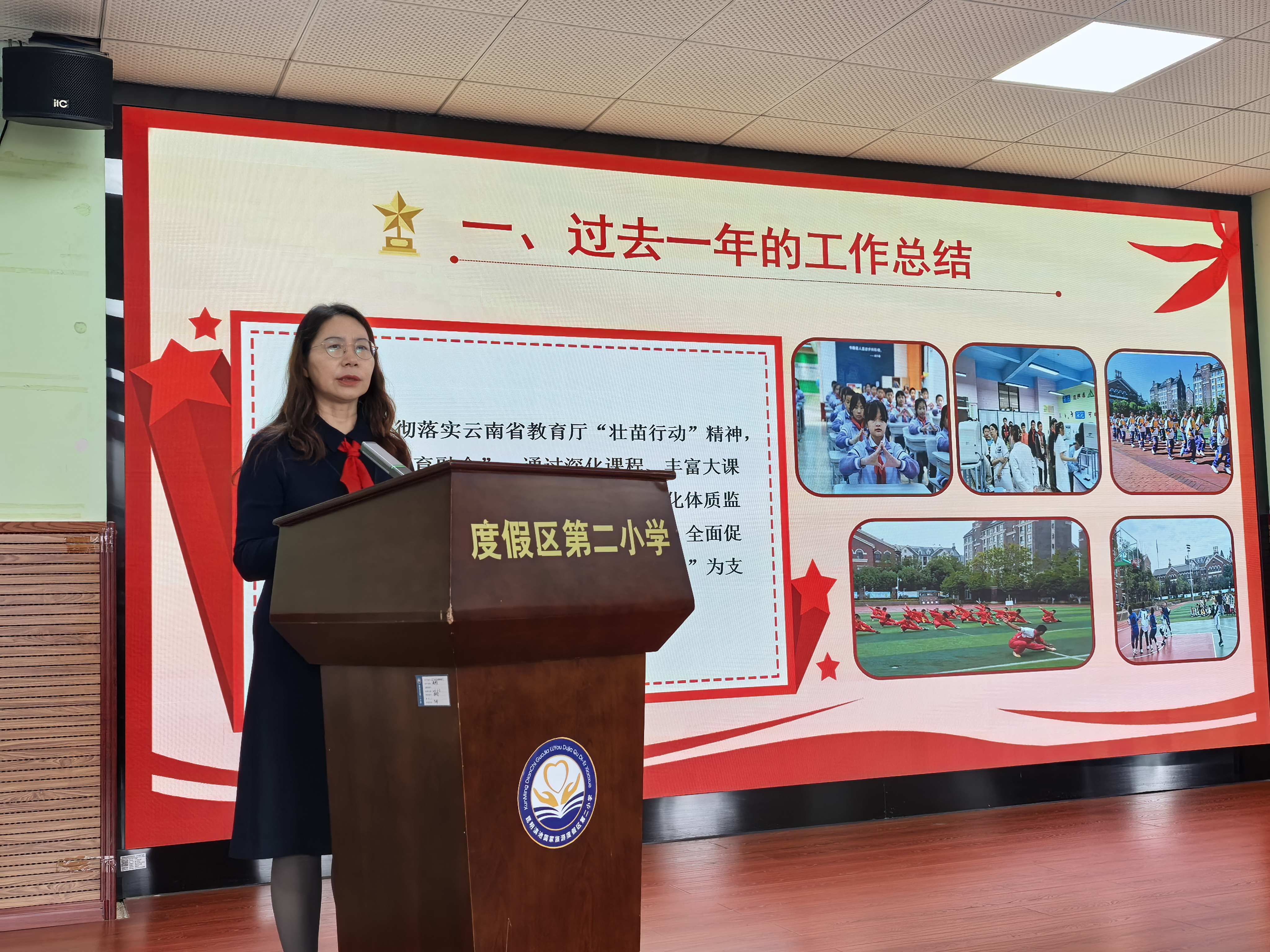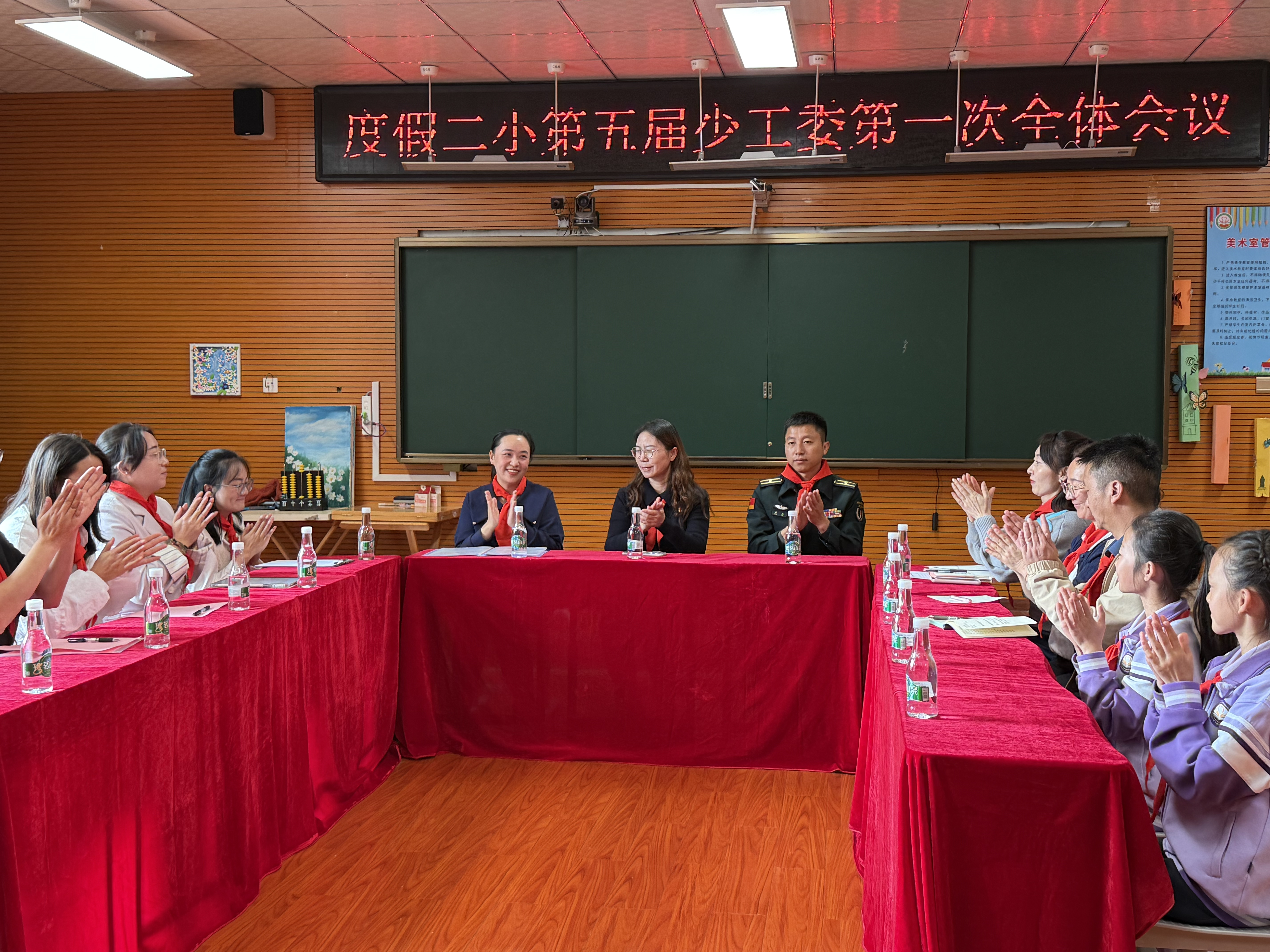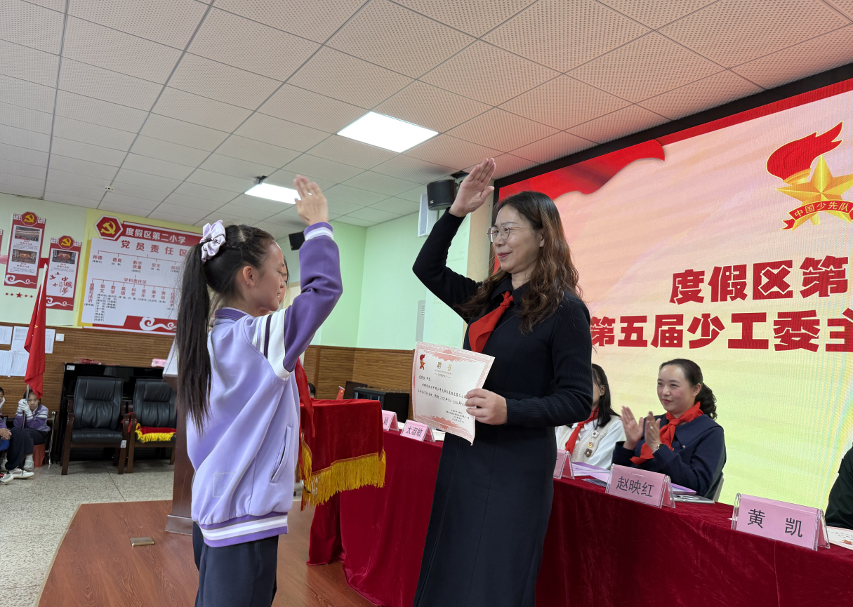 最后,新当选的度假区第二小学第五届少工委主任赵映红讲话。她表示,新时代的少先队工作,使命无比光荣,责任无比神圣,度假区第二小学少工委将高举星星火炬,踔厉奋发、勇毅前行,铸就少先队光荣梦想,不断开创少先队工作新局面,让少先队工作为度假区第二小学高质量发展迸发出更加绚丽的光芒。
