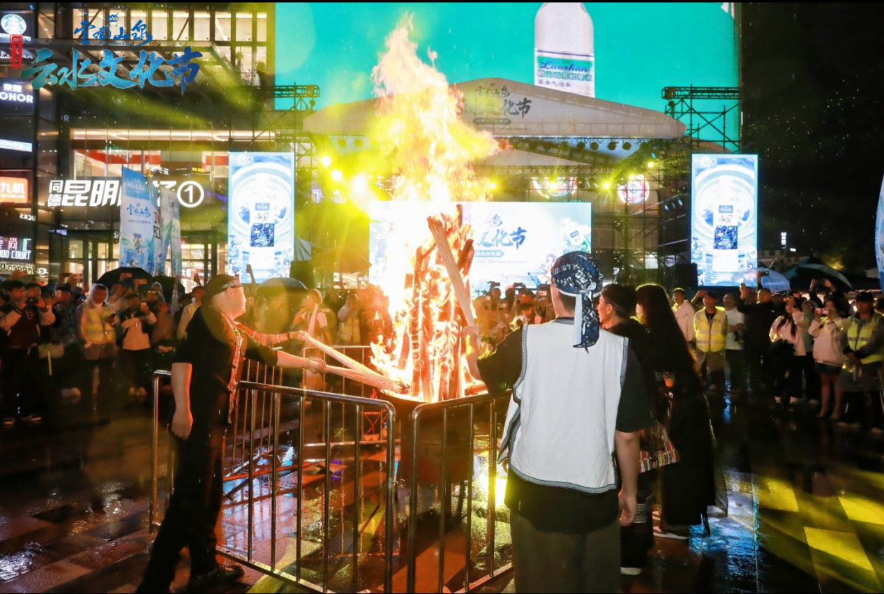 活动的压轴环节——民族打跳更是将现场气氛推向最高点。在《三跺脚》的欢快节奏中,云水体验官、乐队成员与全场观众手牵手围成圆圈,在“云水打歌队”的引领下快乐起舞。熊熊燃起的篝火映照着一张张笑脸,不同年龄、不同背景的人们在这个特别的夜晚因云水文化而相聚,共同书写着难忘的回忆。