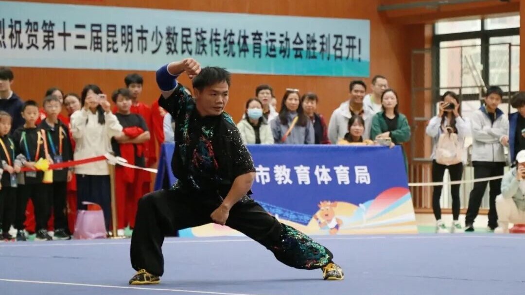 10月20日,昆明市第十三届少数民族传统体育运动会首枚金牌在寻甸县综合训练馆产生,寻甸县代表队凭借精湛技艺,在民族武术类传统拳术项目中脱颖而出,斩获本届运动会“首金”。