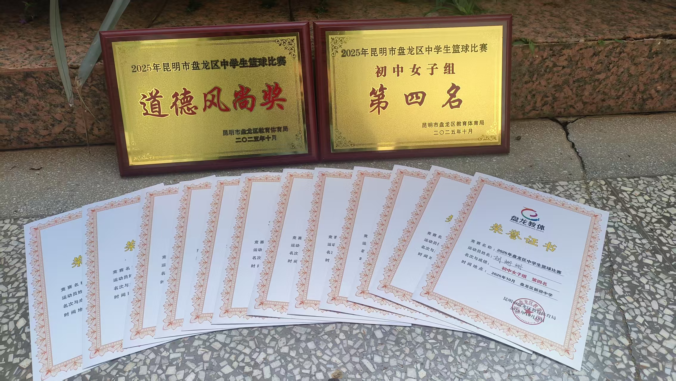 在近日落幕的盘龙区2025年中学生篮球比赛中,昆明铁路五中女子篮球队历经一周的六轮鏖战,不畏强手、敢打敢拼,最终荣获初中组第四名,同时荣获体育道德风尚奖。