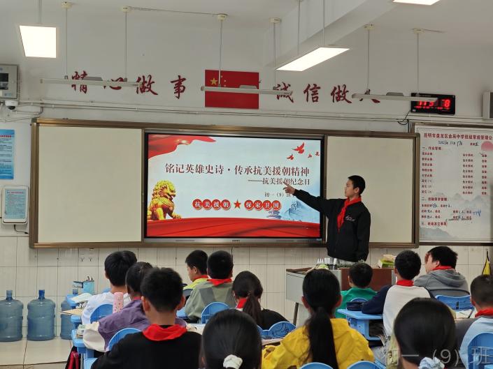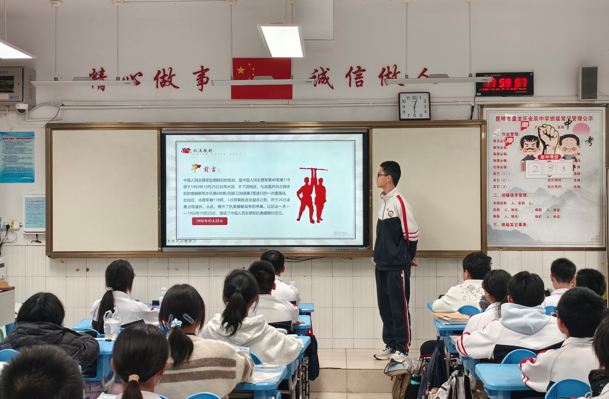 为缅怀抗美援朝英烈,传承弘扬抗美援朝精神,在抗美援朝纪念日来临之际,昆明市盘龙区金辰中学组织开展了以“赓续英雄血脉,奋进复兴征程”为主题的爱国主义教育活动。