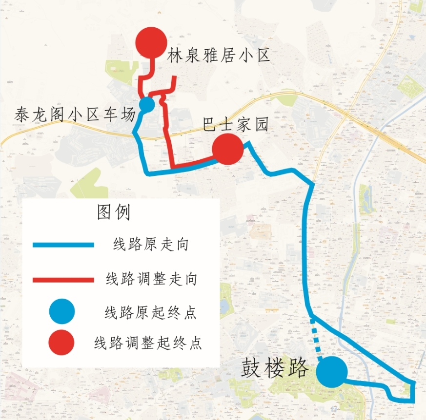 Z146路调整后,起终站调整为“金殿车场(始发站)—金林碧水小区南门(终到站)”,运营时间7:00—20:00、票制票价不变。