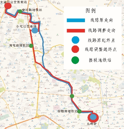 K2路起终站为“大漾田公交首末站(始发站)—东寺街(终到站)”,为优化公交线网布局,满足王筇路、昆武辅道沿线市民的出行需求,对K2路的线路走向和停靠站点进行局部优化调整,营运时间、票制票价不变。K2路调整后,保留接驳地铁3号线潘家湾地铁站,地铁4号线金川路、海屯路地铁站,地铁5号线弥勒寺地铁站的功能。