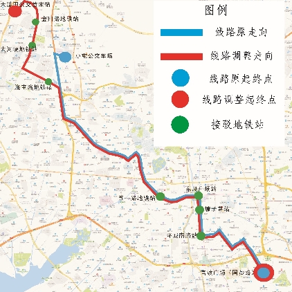69路现起终站为“北部公交枢纽站(始发站)—建设路(终到站)”,为减少69路在人民路、环城西路与其他公交线路的重复率,同时提升线路运营车辆周转率,缩短乘客候车时间,将69路起终站调整为“北部公交枢纽站(始发站)—正义路(终到站)”,营运时间、票制票价不变。69路调整后,保留接驳地铁2号线北部汽车站、霖雨路、交三桥地铁站,地铁5号线世博园、白龙寺、石闸地铁站,地铁4号线白龙路地铁站的接驳功能,整体提升69路的线路区域化服务功能。