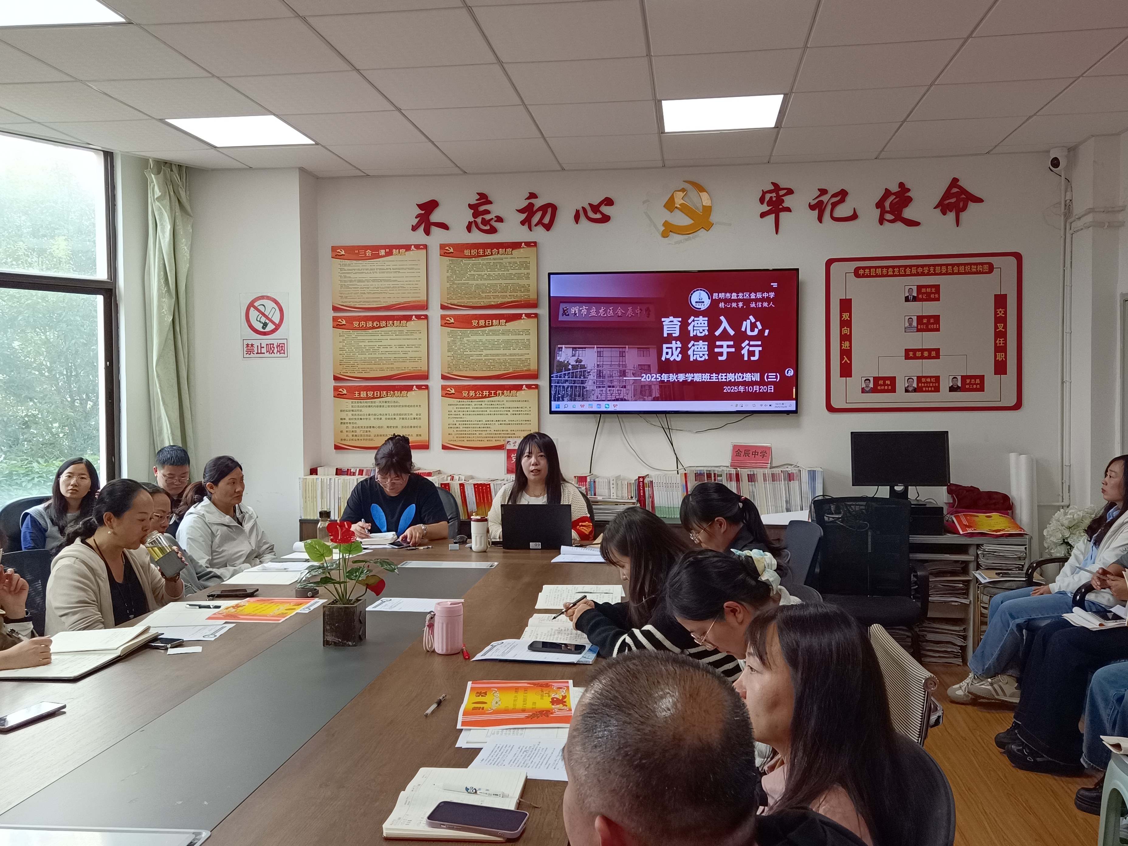 为进一步提升班主任队伍的专业素养,聚焦班级管理、学生发展及家校协同三大核心维度,10月20日,盘龙区金辰中学举行以“育德入心,成德于行”为主题的秋季班主任岗位专题培训会。