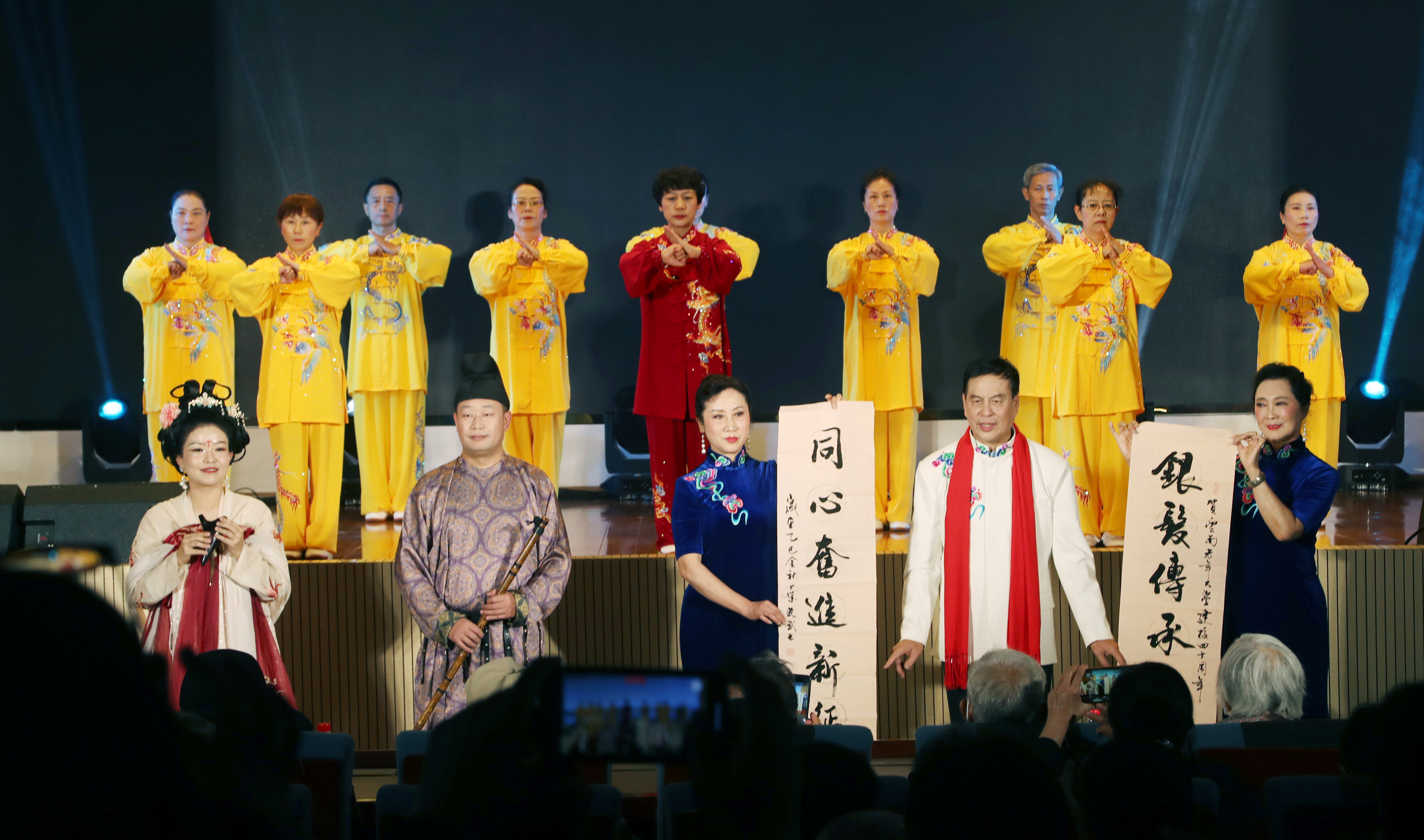 演出在气势恢宏的舞蹈《云岭鼓韵》中拉开帷幕。随后,深情悠扬的合唱《百年守望》《初心不忘把歌唱》,唱出了老同志们对祖国的挚爱与不变的初心。情景小品《报名》以幽默诙谐的方式,通过三个片段回顾了云南老年大学三迁校址的创业发展之路。教学展示《太极书韵・山河开卷》则将太极、书法与器乐巧妙融合,于刚柔并济间尽显中华传统文化的无穷魅力。
