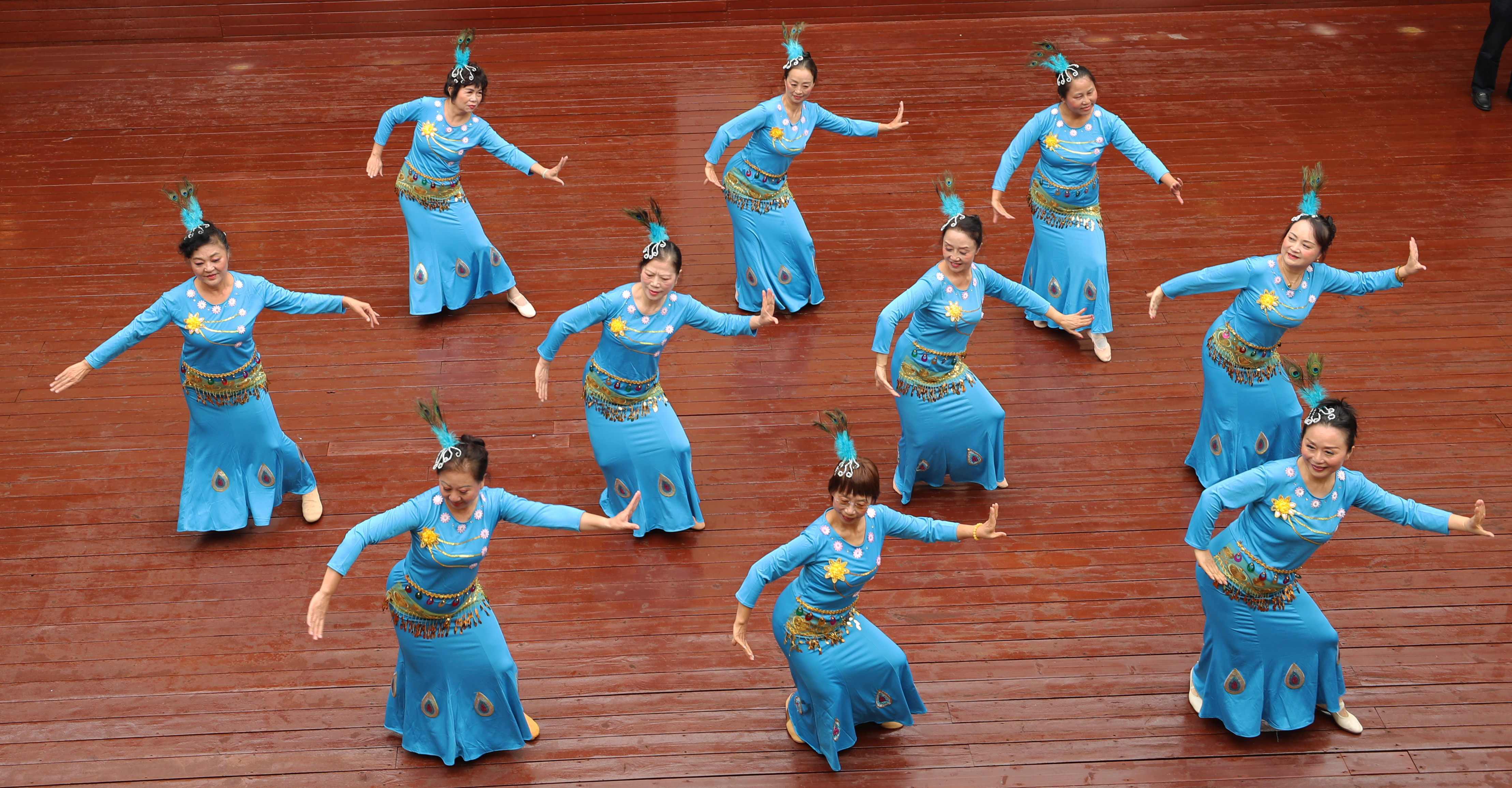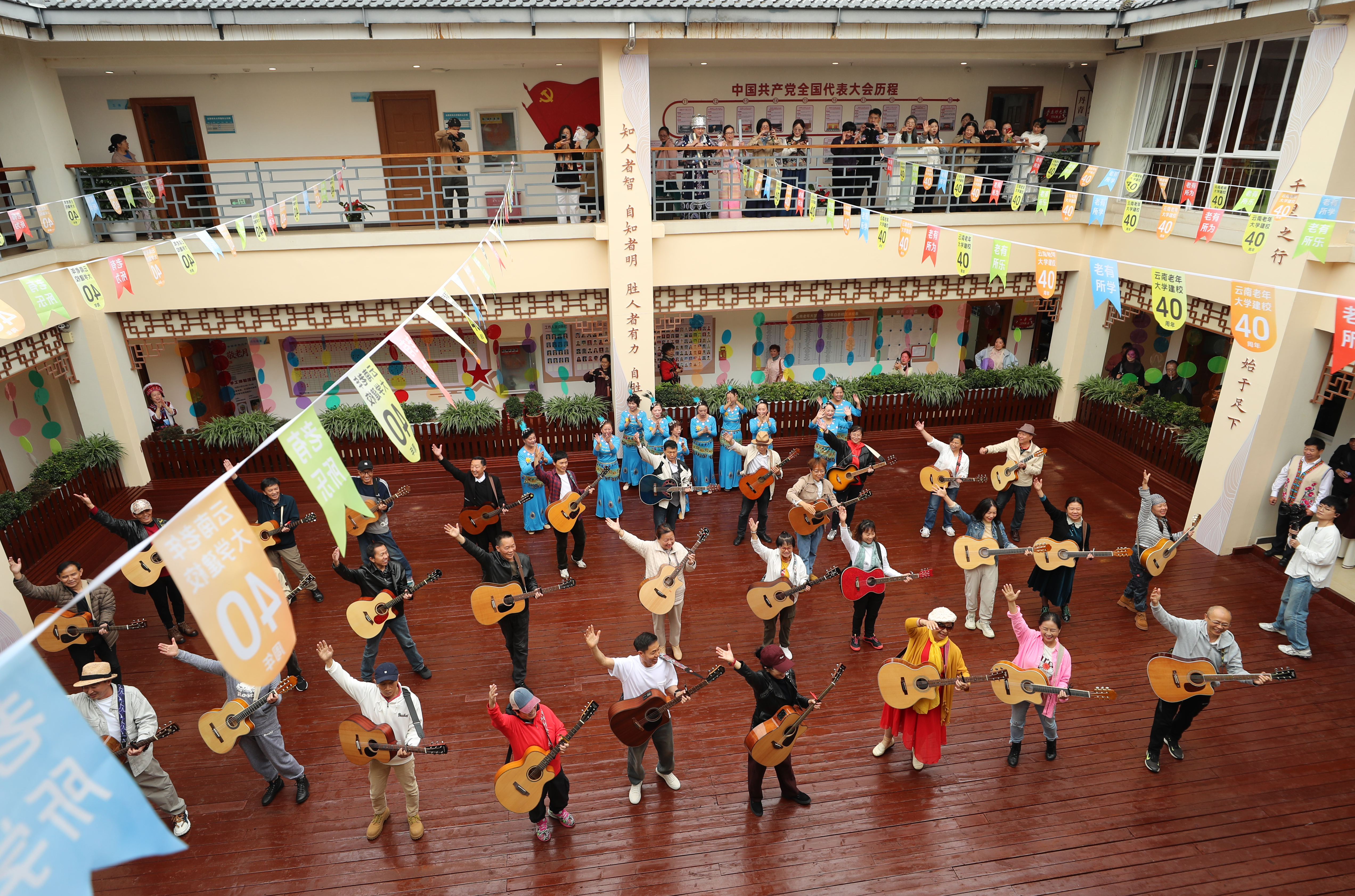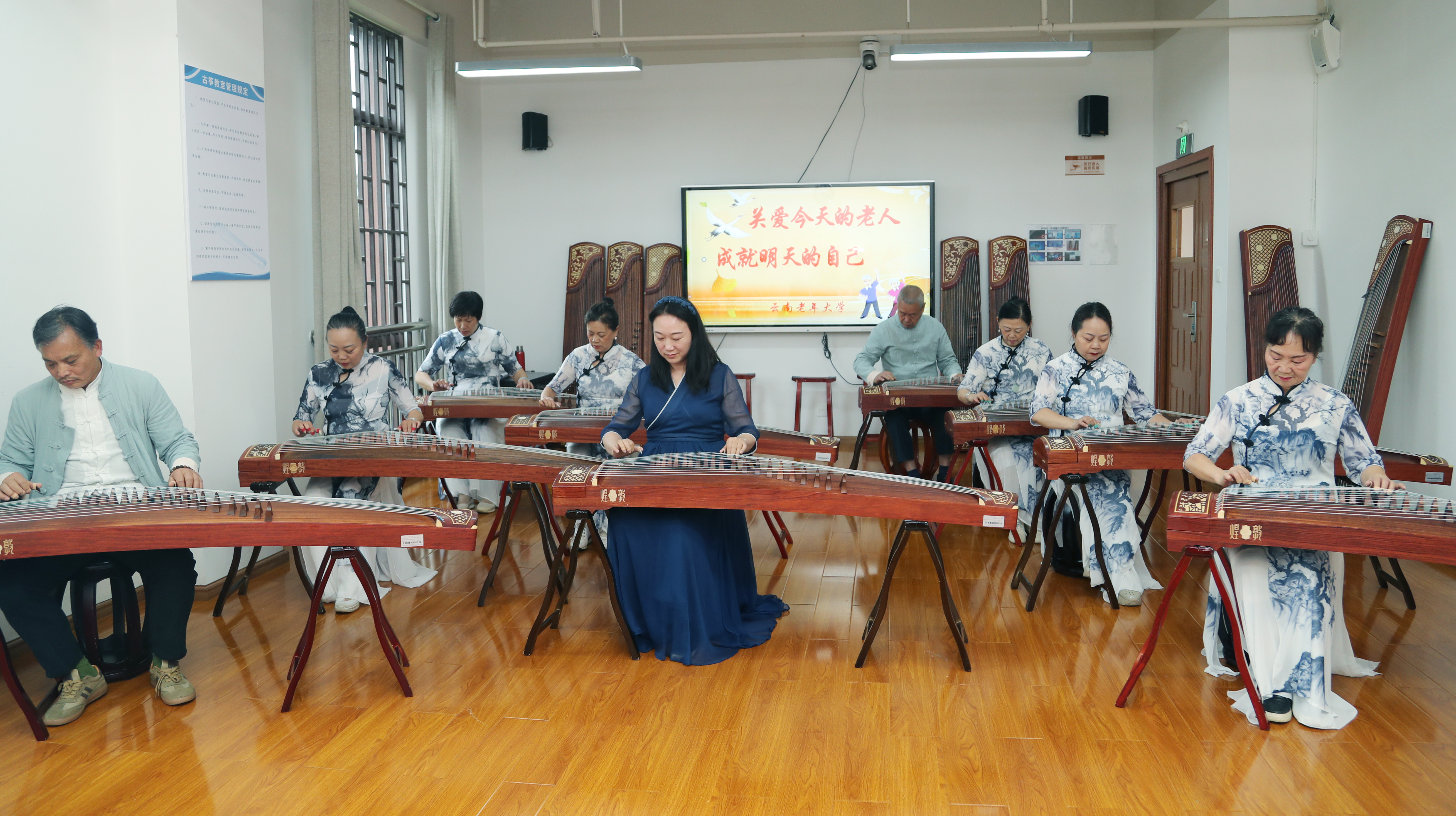 一旁的空地上,教学成果展示同样精彩。古筝清鸣流转千年雅韵,葫芦丝吹开云岭乐章,柔力球灵动飘逸舞出健康节拍……没有华丽的舞台,学员们却以最饱满的精神状态和最动人的真诚,用歌声、舞姿和演奏,抒发着不老的风华与赤子情怀,证明岁月带不走对生活与美好的热烈追求。活动最终在欢快的《石榴同心》民族舞打跳中达到高潮,学员们手拉手围成同心圆,用和谐的舞步踏响幸福节拍,映照出“中华民族一家亲,同心共筑中国梦”的深厚情谊。