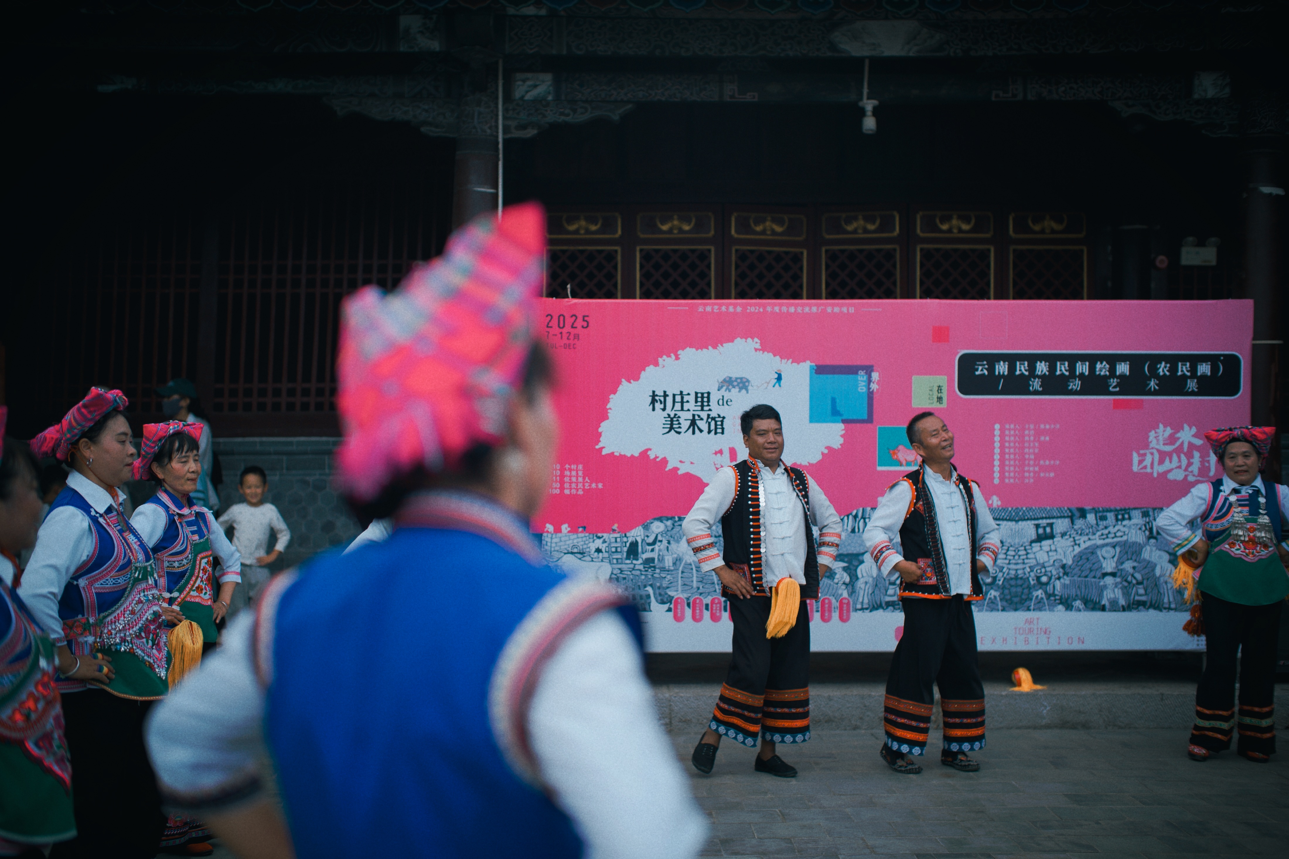 据介绍,“界外·在地”村庄里的美术馆——云南民族民间绘画(农民画)流动艺术展是一场持续的乡村艺术行动,旨在让农民画家成为乡村的叙事者,也让艺术重新与土地、生活、社区发生连接。建水县团山村站为该系列艺术展的第6场,展期将持续至2025年10月27日。