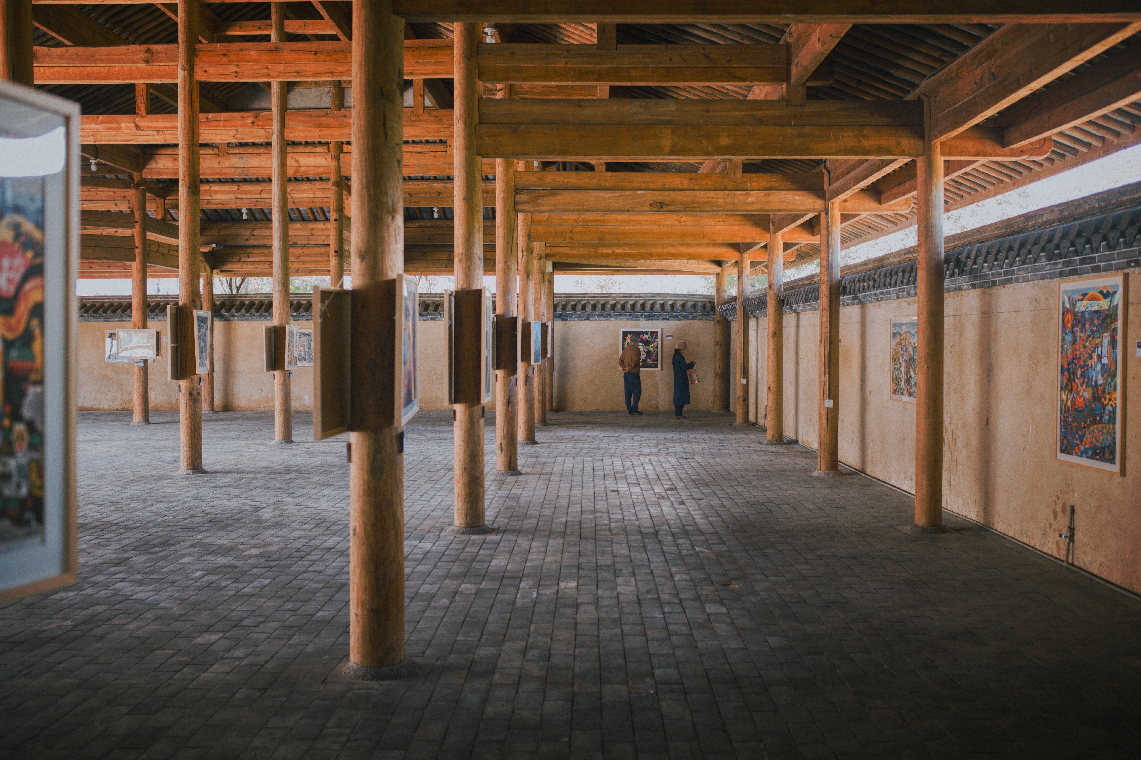 同一片乡土,同一种眷恋,不同民族携手勾勒心中的彩云之南。来自傣族、仡佬族、哈尼族、汉族、傈僳族、纳西族、佤族、彝族、壮族的农民画作者,以质朴笔触描绘乡土生活的诗意日常——劳作、丰收、节庆、团聚。当这些画作与木梁、砖瓦相遇时,一种关于“故乡”的温度悄然浮现。