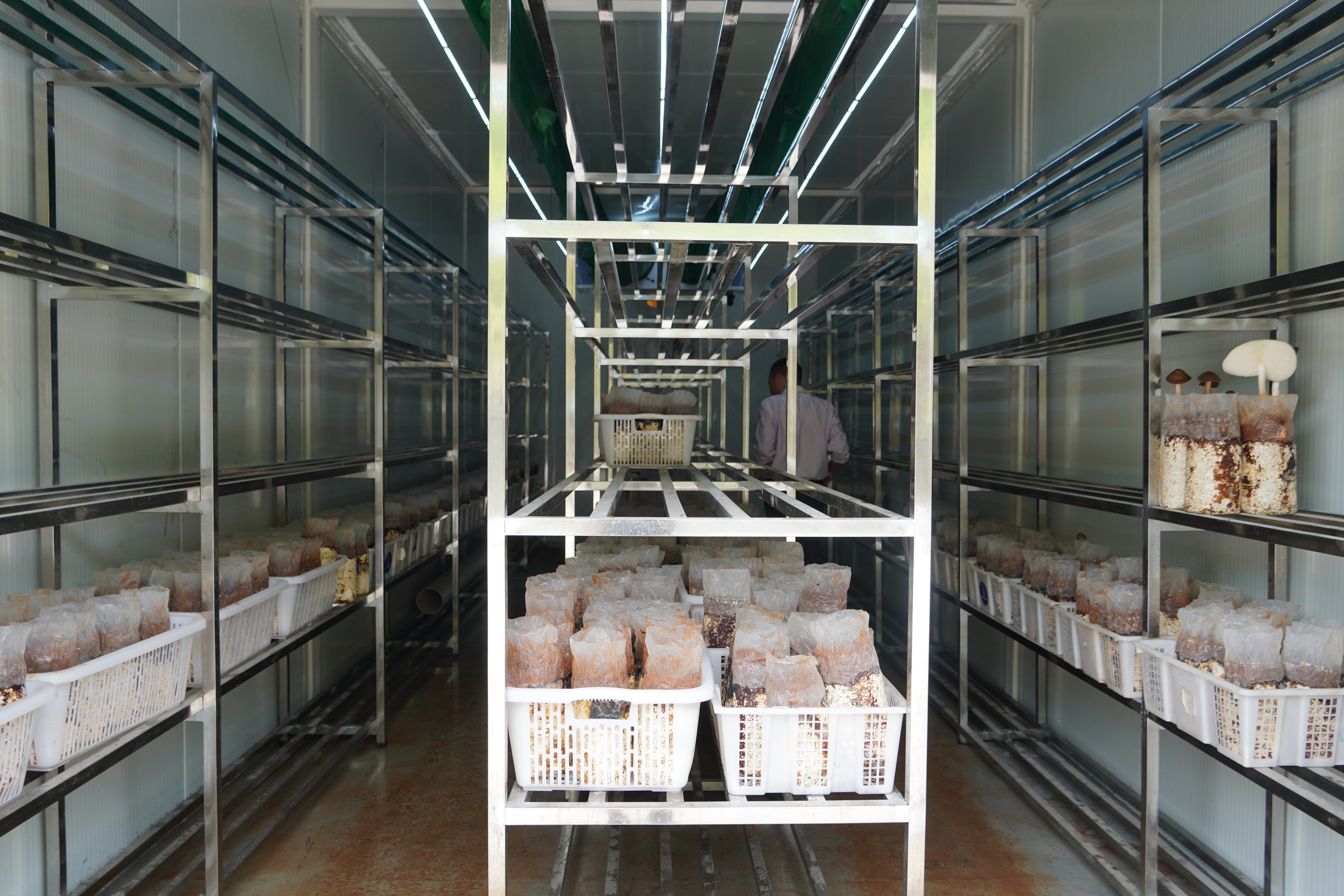 “以前用大棚种植,现在靠智能化。” 易门鑫亿农业科技有限公司经理周当先介绍,方舱内配备恒温、喷淋、排风等一整套系统,能精准模拟食用菌生长环境,实现四季种植,还可培育反季节产品。“一个方舱常规放 4000 个菌包,我们会根据下游市场需求灵活调整种植品类,保证产品价优质好。”