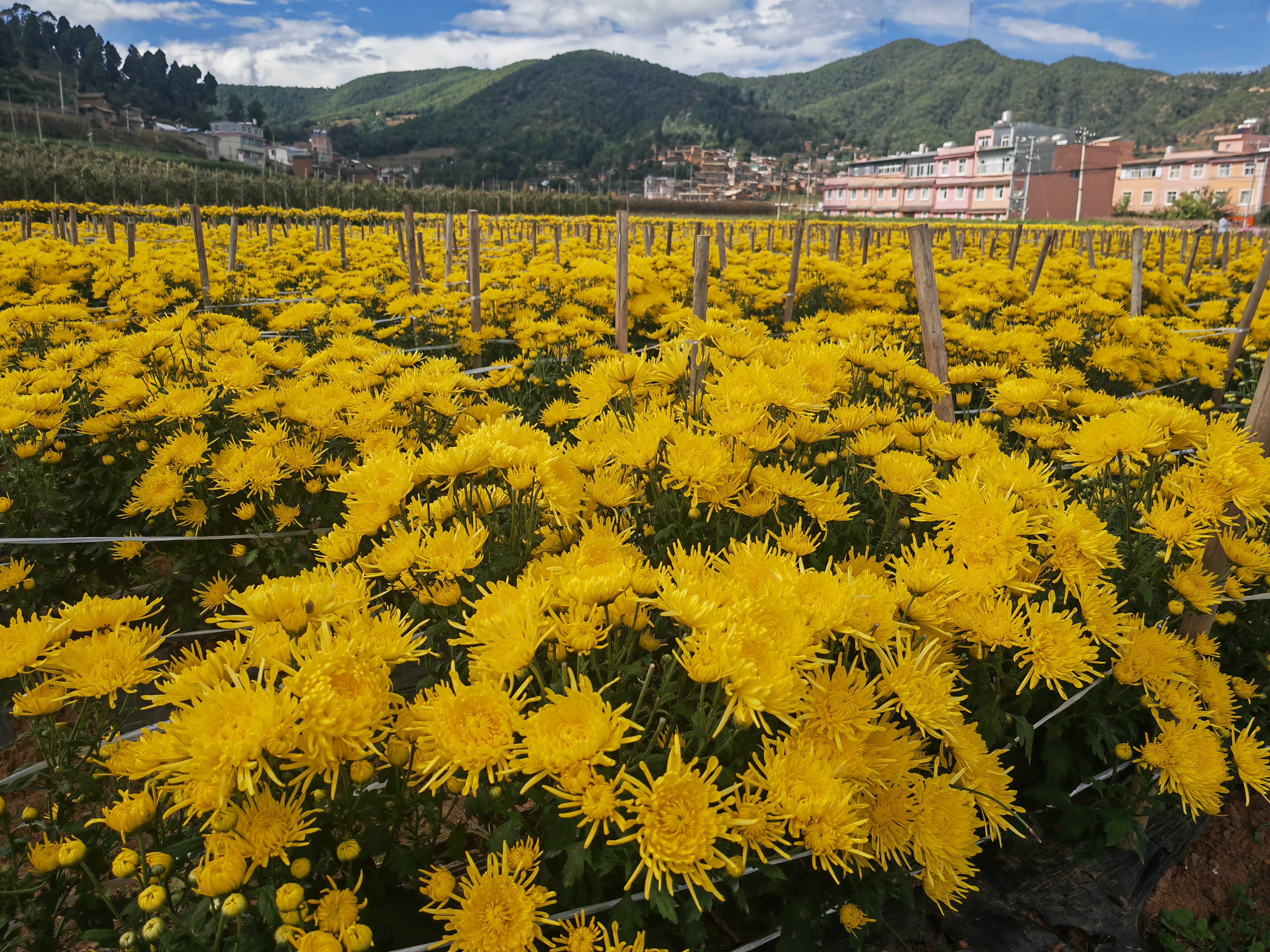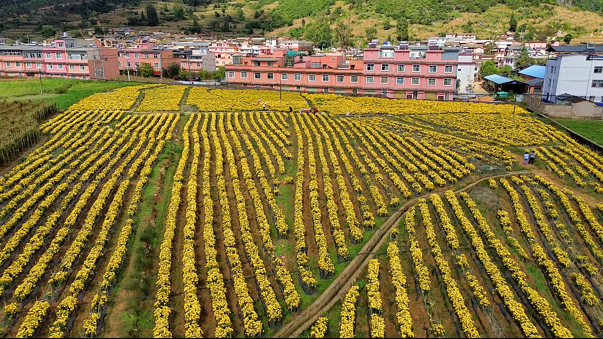 金秋十月,玉溪市易门县小街乡的田间地头洋溢着丰收的喜悦。27亩金丝皇菊竞相盛放,金黄的花朵在阳光下熠熠生辉,一垄垄花海连绵成片,菊香弥漫在山间村落,构成了一幅动人的田园丰收画卷。