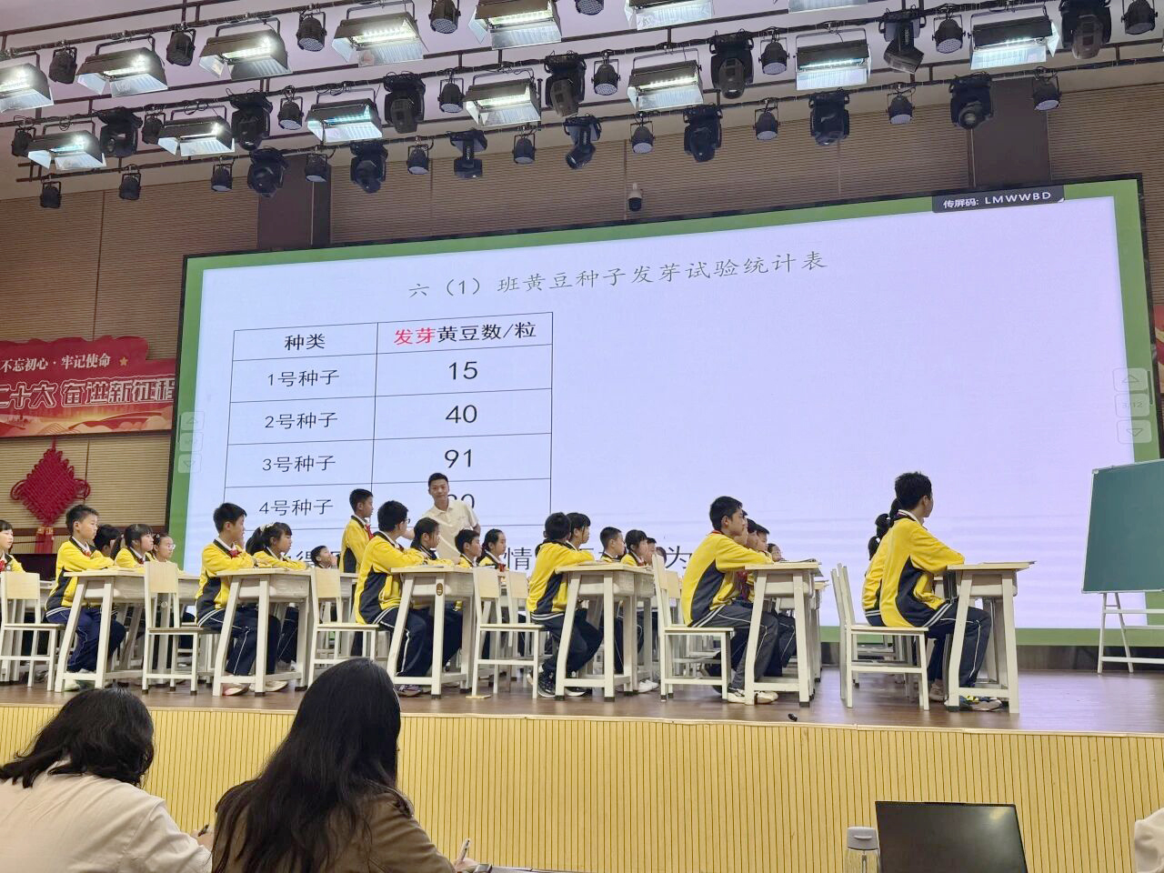 “六(1)班黄豆种子发芽试验统计表:1号种子15粒、2号种子40粒、3号种子91粒……”鄢刚用同学们亲手记录的实验数据导入课堂。这些鲜活的数字,瞬间拉近了百分数与学生生活的距离。