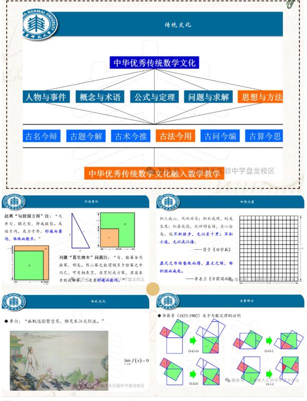 10月13日下午,云南师范大学实验中学盘龙校区特邀华东师范大学数学科学学院博士生导师、HPM领域权威专家汪晓勤教授担任主讲嘉宾,带来一场以“中华优秀传统数学文化融入高中数学教学”为主题的学术讲座。
