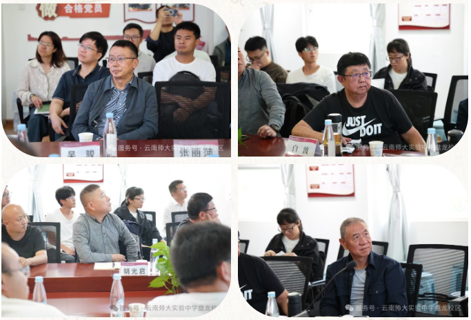 华东师范大学教师教育学院数学教育研究所研究员邹家晨,云南师范大学教育学部教授吴骏,盘龙区教师进修学校正高级教师张静元,正高级教师白波,省、市、区数学名师工作室主持人于雷、张茂强、冷天存、胡光启等名师携工作室成员,以及云南师范大学实验中学各校区理科教研组长、备课组长和全体数学教师共同聆听这场数学文化的思想碰撞。讲座在盘龙校区学生处主任、云南省兴滇英才支持计划教学名师工作室主持人冷天存主持下顺利进行。