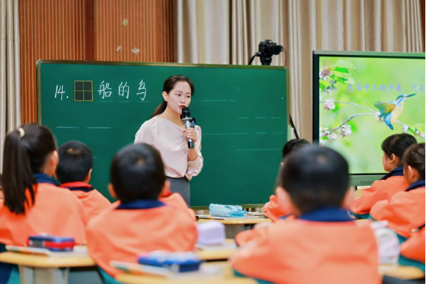 揭牌仪式后,教育部领航罗蓉名师工作室单元整体教学研讨紧锣密鼓地展开。石林县巴江小学教师李艳率先登场,执教《搭船的鸟》。她紧紧抓住“学习观察方法”这一核心,课堂环节清晰流畅。学生们在她的引导下,从发现观察对象开始,逐步学习观察方法。“读-学-练”三个环节环环相扣,格外注重学生的亲身实践与体验。