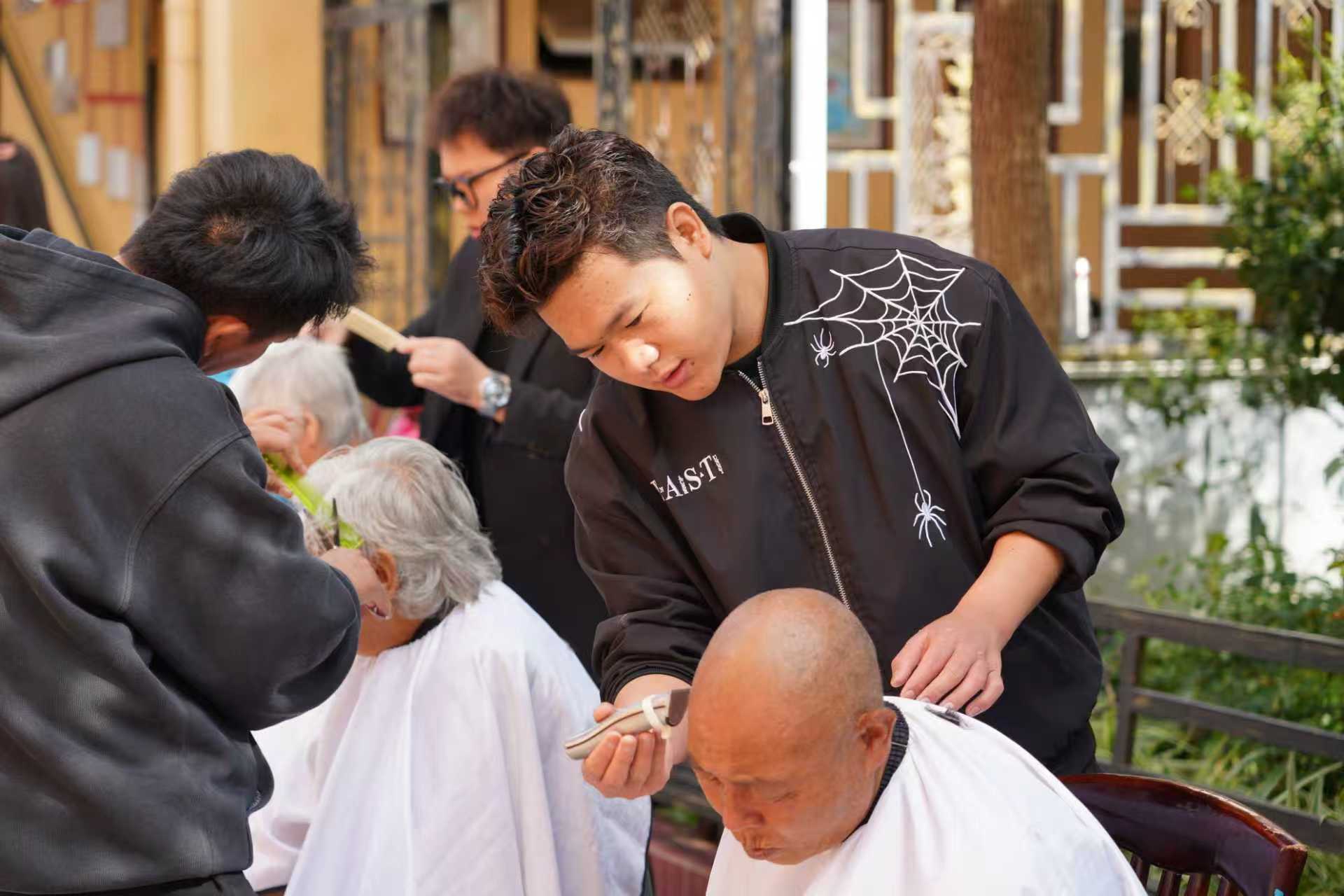 “每个月我们都盼着他们来!”83岁的施会兰刚理完发,摸着整齐的发梢笑得合不拢嘴,“只要说出想要的发型,他们总能剪出来。今天这新发型,舒服又精神!”对她而言,这群理发师的到来不仅是解决理发需求,更是一个月里最值得期待的相聚。