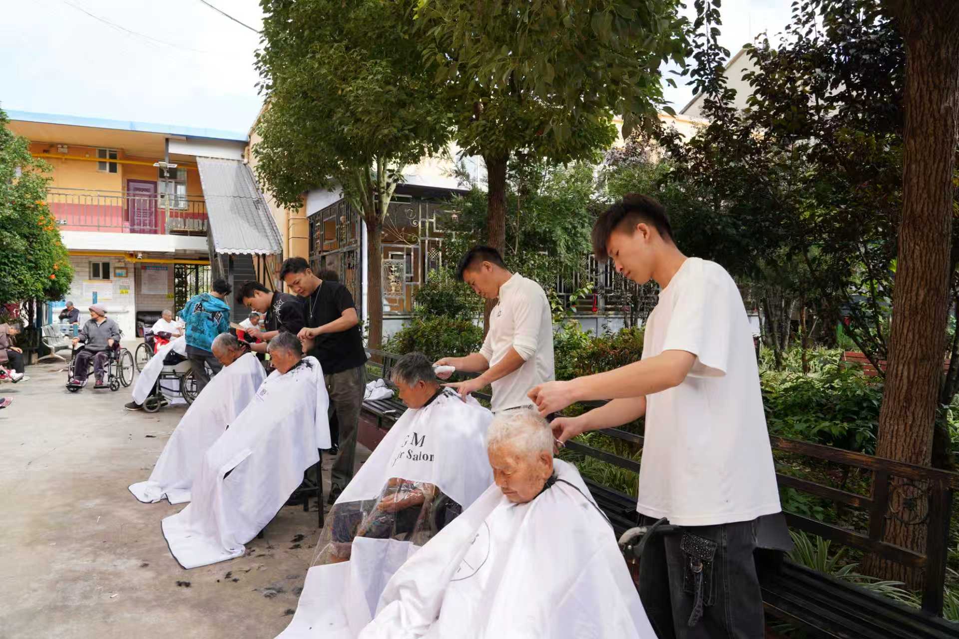 近日,昆明市官渡区矣六敬老院里暖意融融,一群爱心理发师来到敬老院里,给老年人们理发,欢声笑语之间老人们换上了新发型。