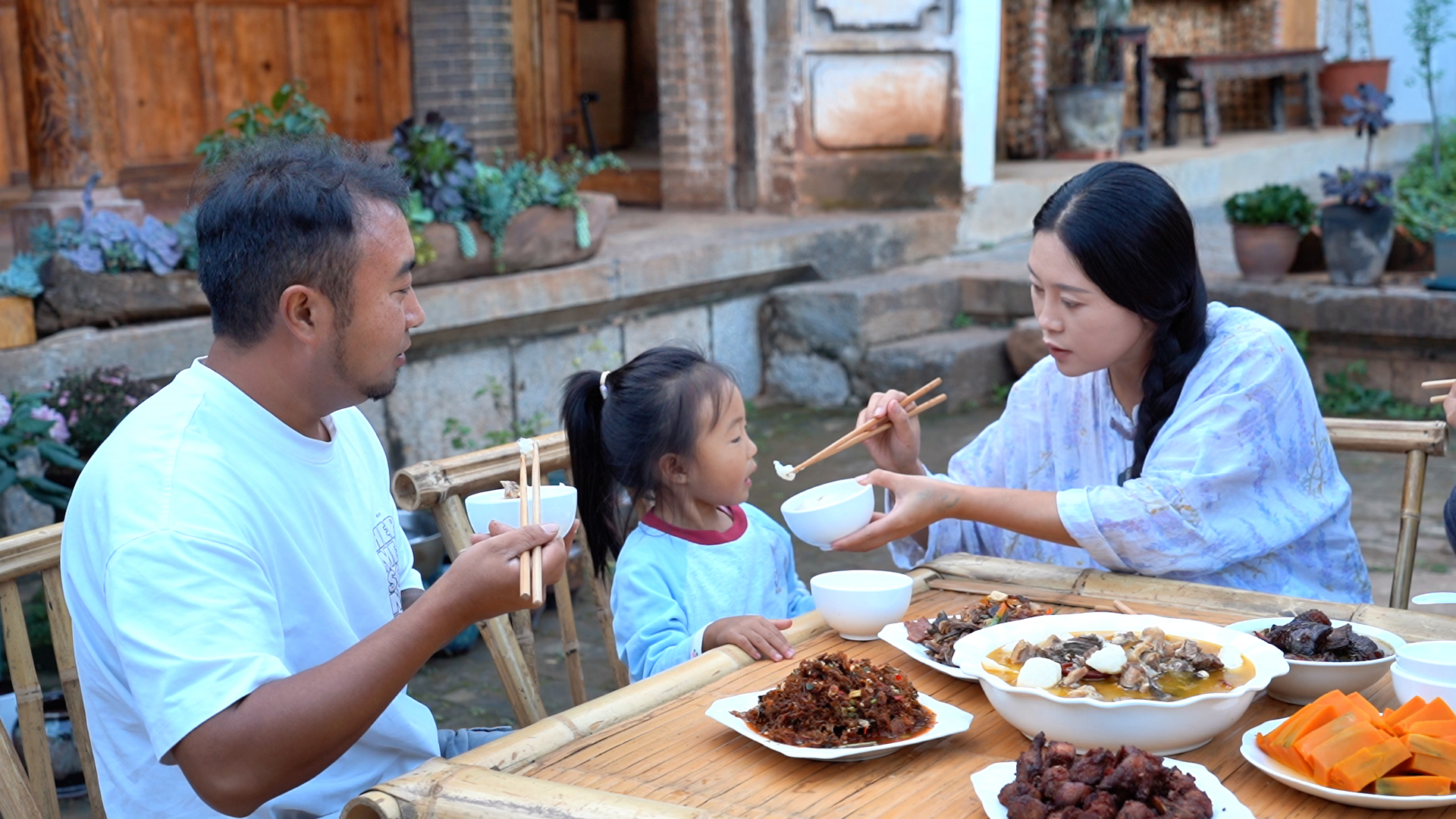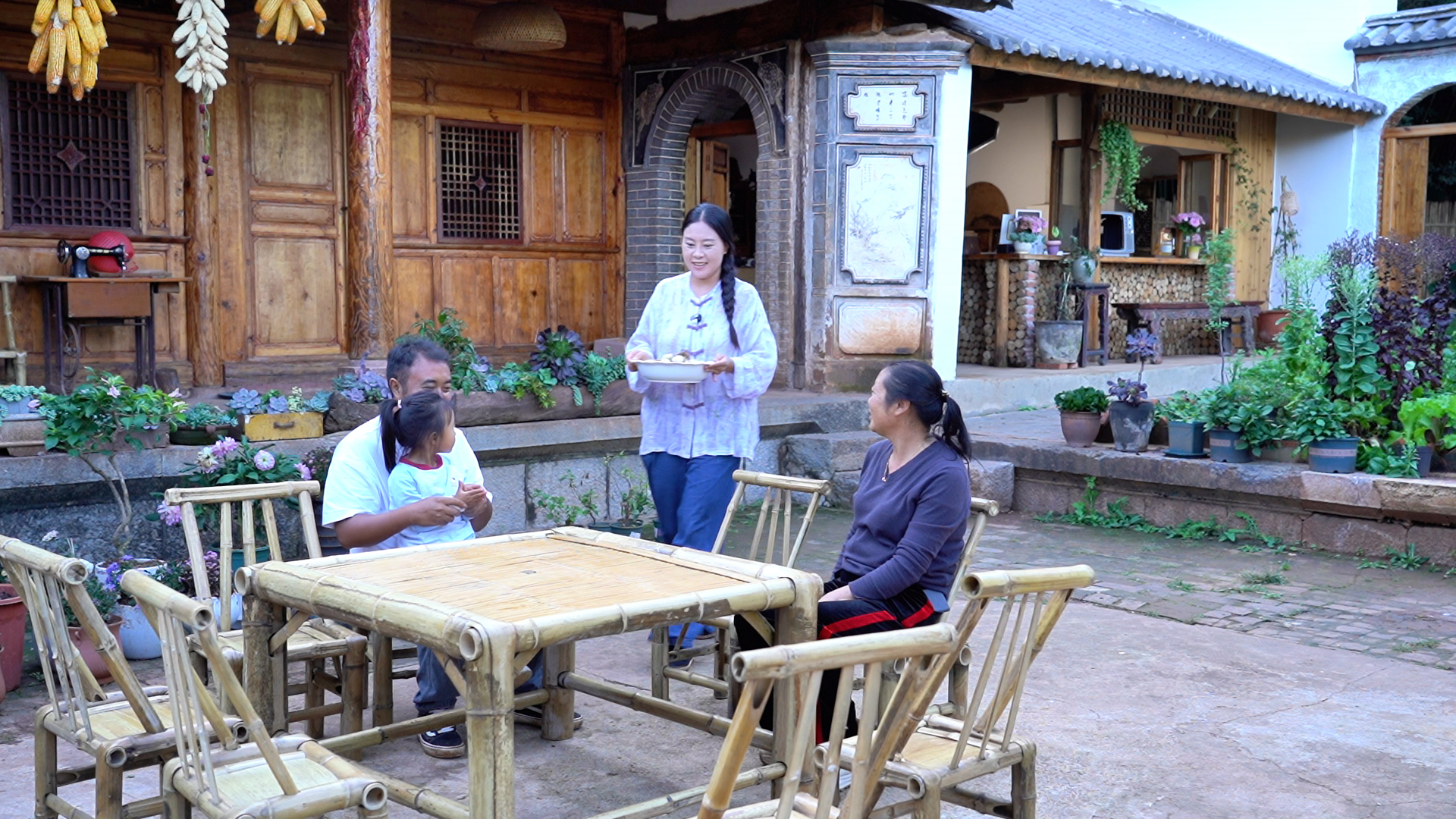 院子改造好后,他们开始在这里拍摄创作,用短视频分享宾川特色美食制作过程,不仅让小院成为邻里相聚的“打卡地”,更让“旅居”的美好图景走进了更多人的视野。张蕊介绍说:“就周边的一些朋友、粉丝看了我们的视频之后,很想尝一尝我们家做的饭菜,所以他们就来到我们小院,参观,然后在这里吃顿饭,大家聊聊天,喝杯茶,交个朋友。”