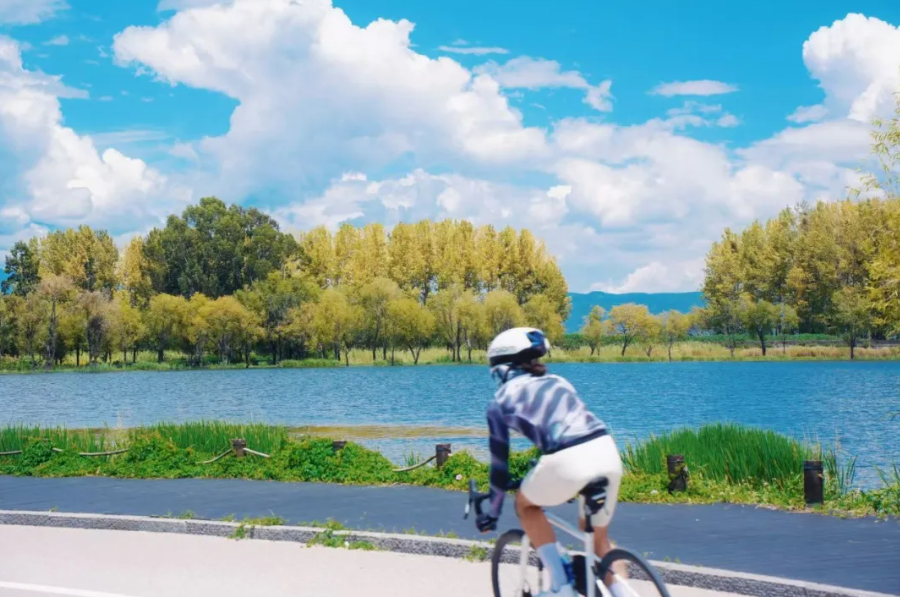 游客在洱海生态廊道骑行 马雯 摄