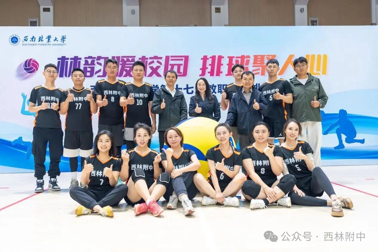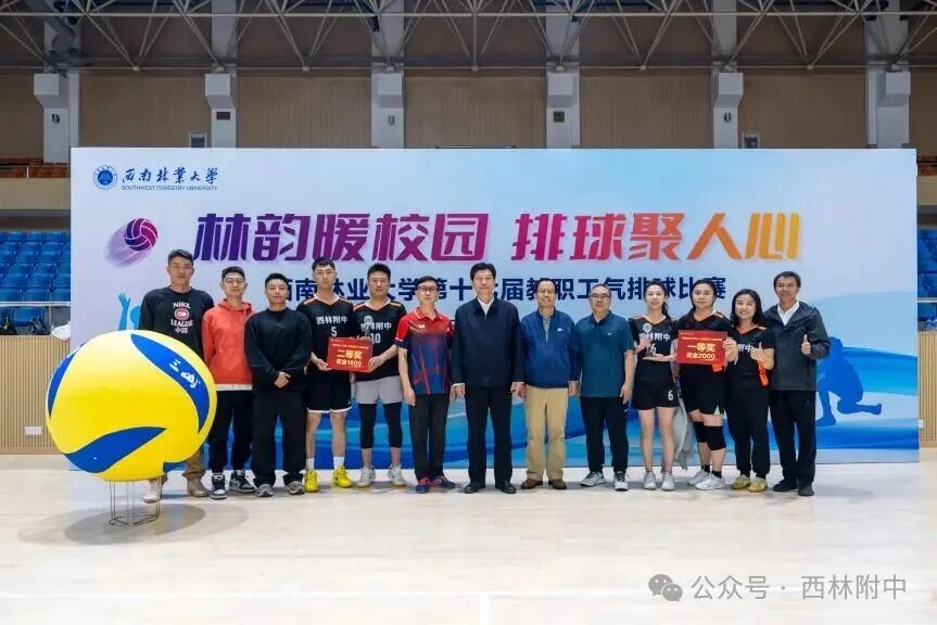 发球精准,扣杀有力!近日,在刚刚落幕的西南林业大学第十七届气排球赛场上,一群特殊的运动员成为焦点。他们平日手持粉笔,耕耘于三尺讲台;此刻却挥洒汗水,闪耀于竞技赛场。西南林业大学附属中学(云大附中西林学校,以下简称:西林附中)的教师们组成队伍,女队勇夺一等奖,男队喜获二等奖。他们用行动诠释了何为“团结拼搏”,为校园注入了蓬勃的朝气与活力。