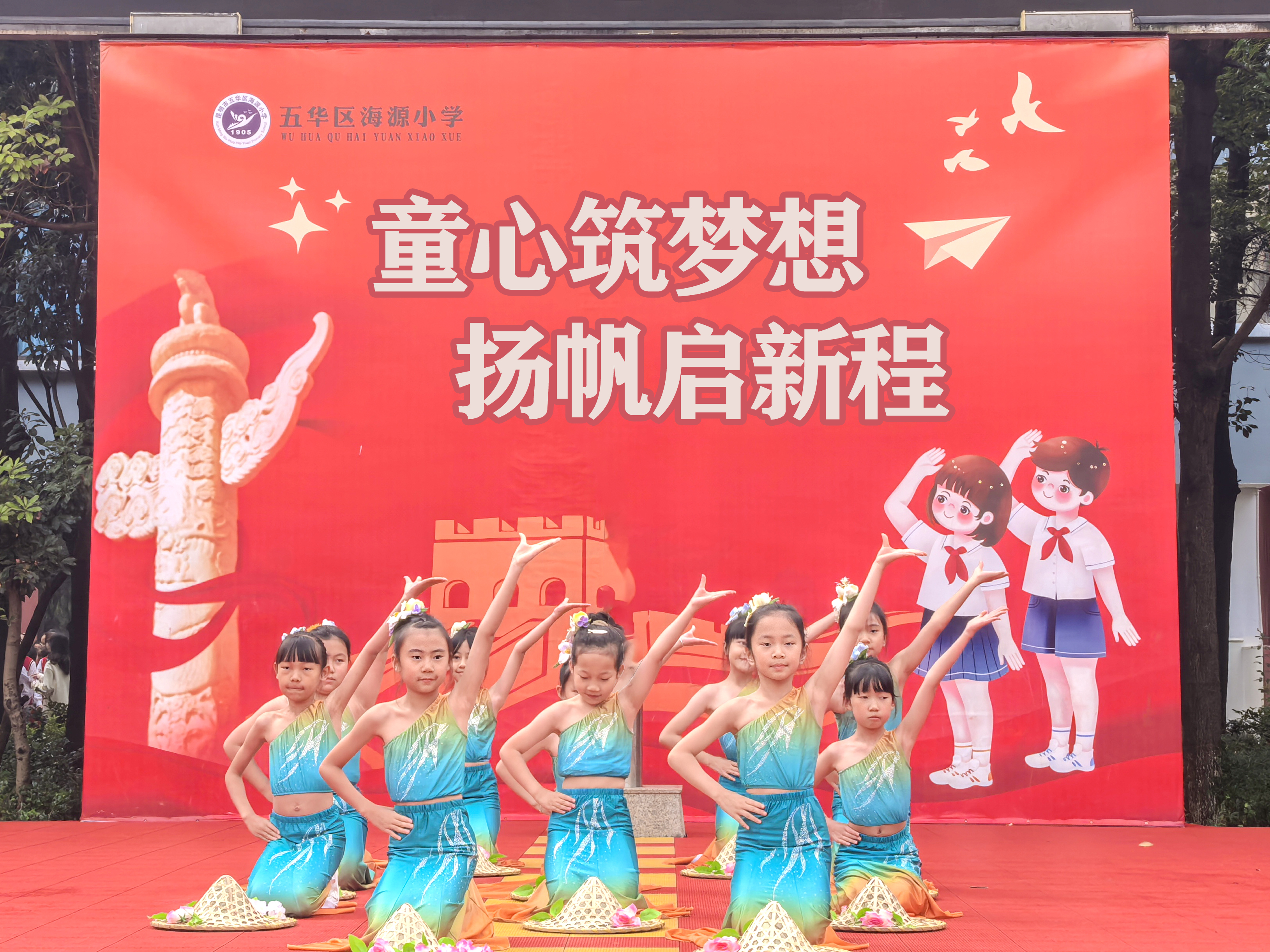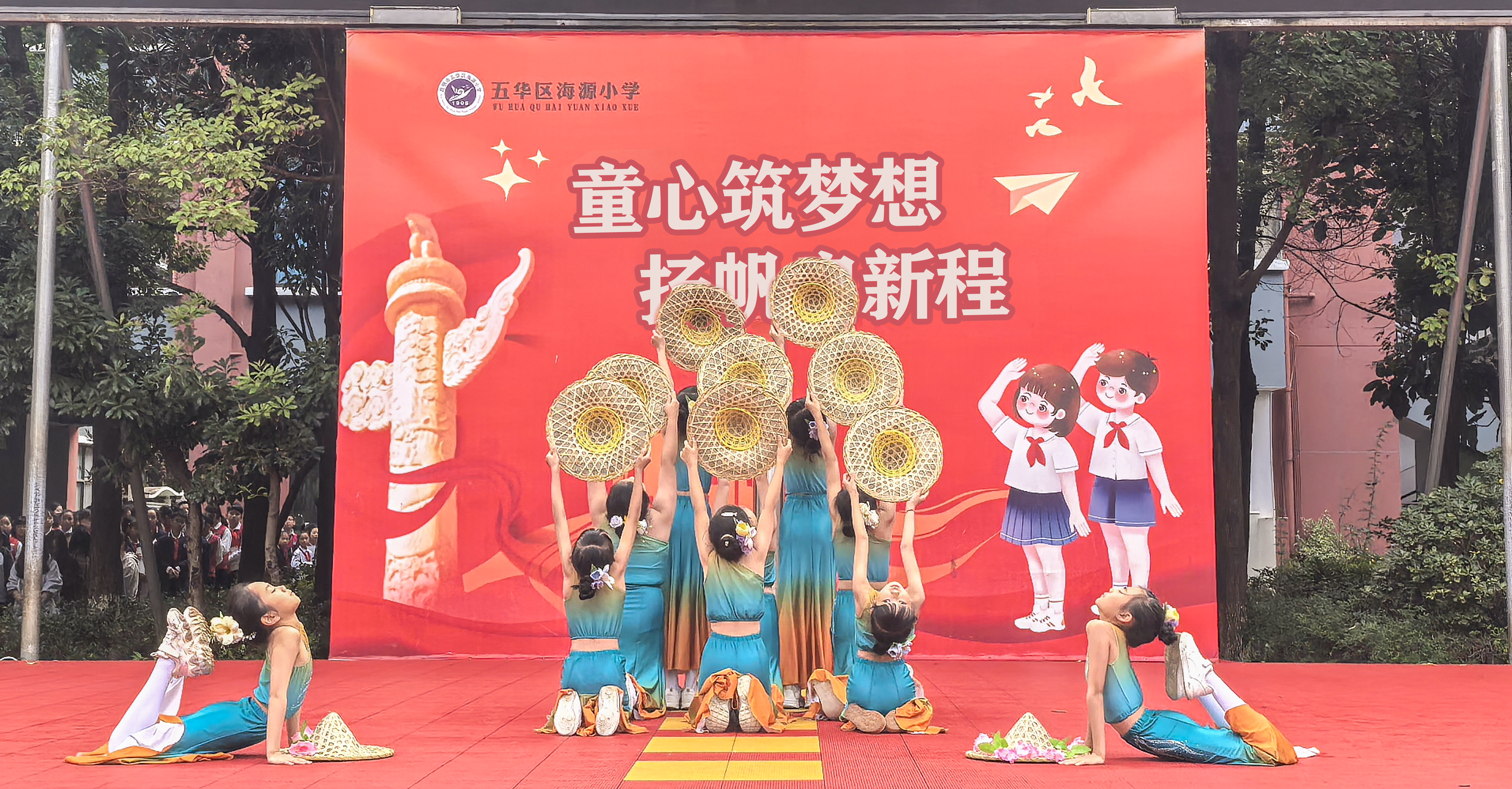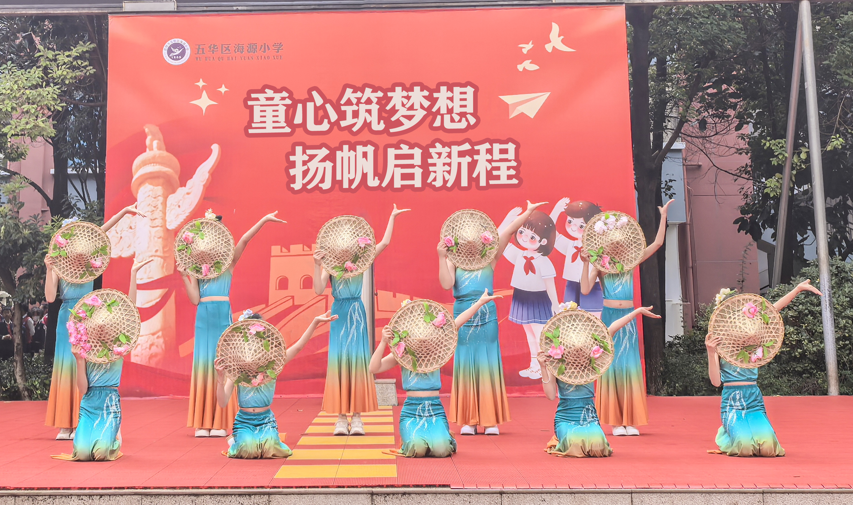 当榜样的接力棒在师生间完成传递,三(7)班的女生们身着精美的傣族服饰,宛如一群灵动的“小孔雀”,翩然登场。她们表演的舞蹈《斗笠》,以优美的舞姿表达了孩子们纯真的梦想与对未来的憧憬,为这场精神盛宴画上了灵动的注脚。她们用舞姿告诉我们:今日,我们被榜样之光引领;明日,我们将成为新的光,扬帆远航。