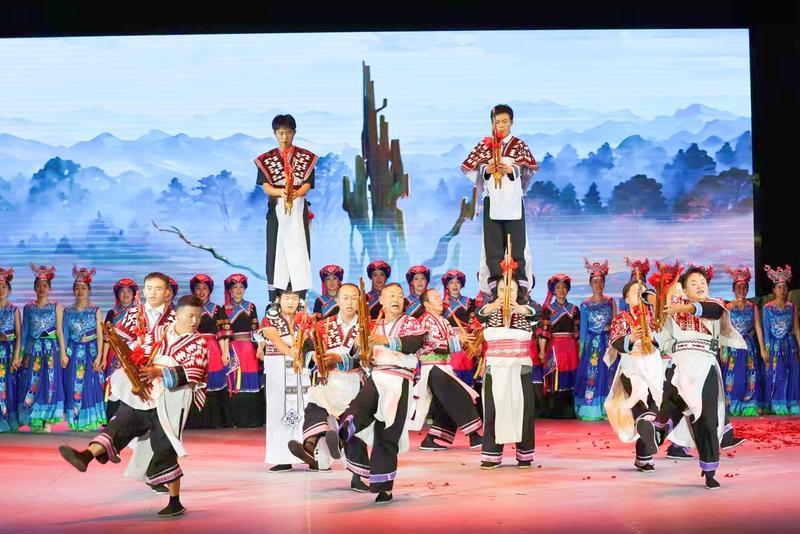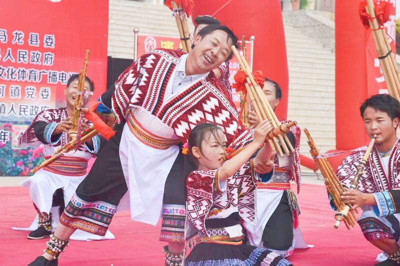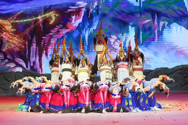 这些“老底子加新花样”的表演,让苗族芦笙乐火出了村子。2015年起,他带着乡亲们活跃于省、市、县(区)的舞台,在云南省第九届民族民间歌舞乐展演、曲靖市少数民族传统体育运动会等大型赛事上,拿了一个又一个金奖。2023年,他带着深沟苗族芦笙舞蹈队参演的大型民族歌舞剧《笙之恋》,被评为2024年度云南省少数民族文化精品工程项目。