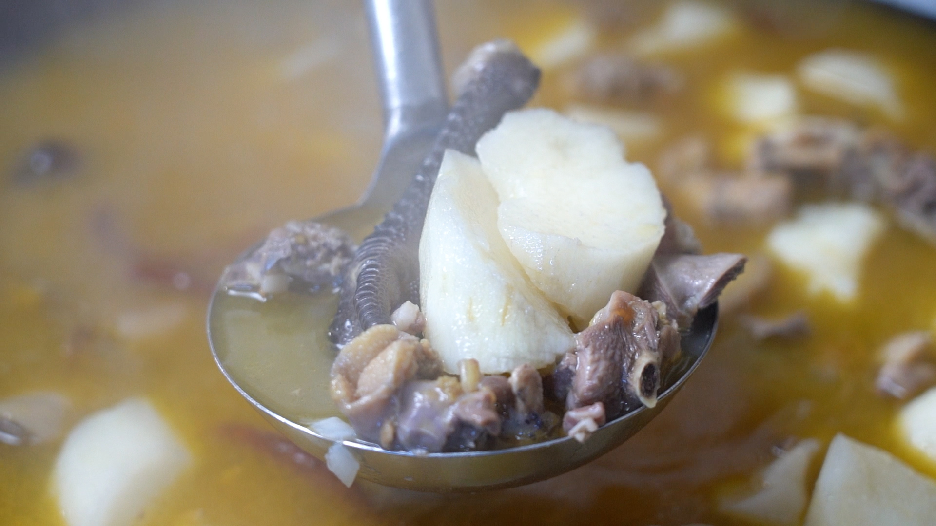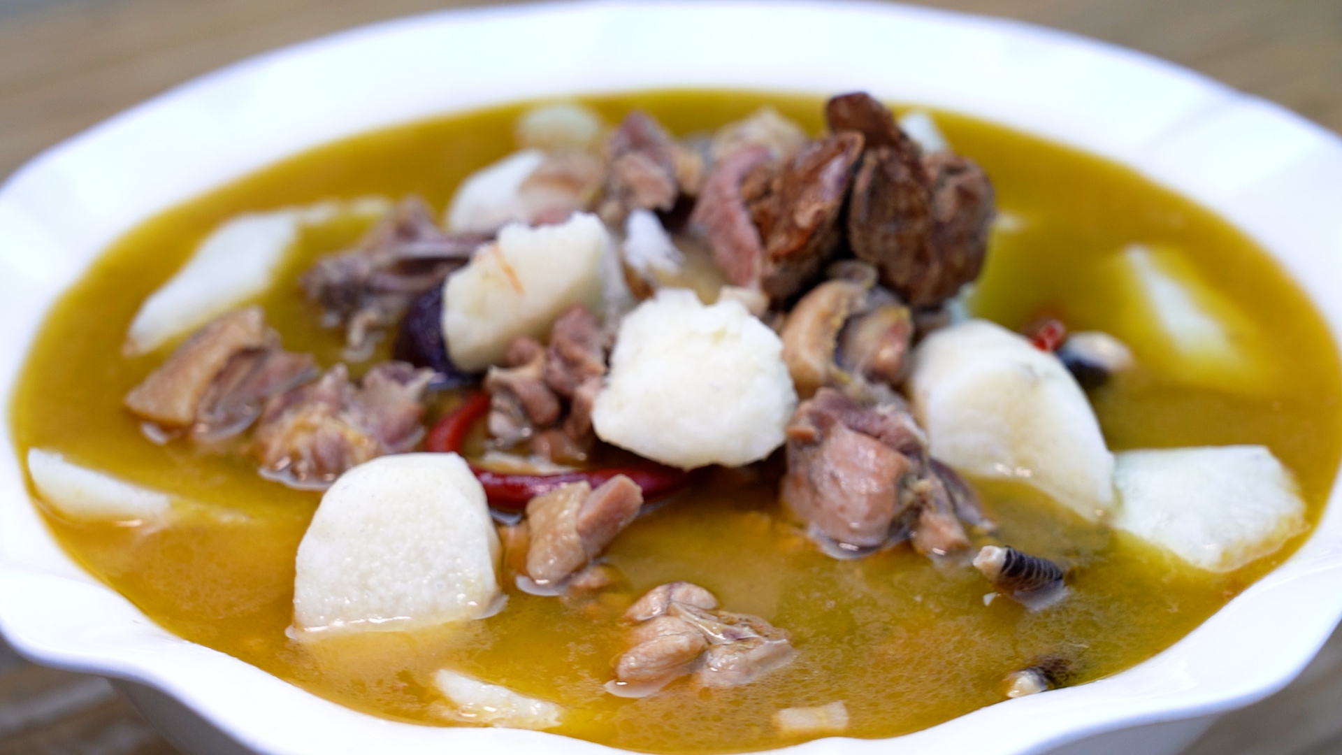 吃上一碗热气腾腾的土鸡炖山药,既温补又暖身,张蕊这样说道:“山药的口感比较软糯,大人、小朋友都可以放心地吃,尤其是像我们鸡足山这边,有这种散养的土鸡,拿它来炖山药,是比较香的。”