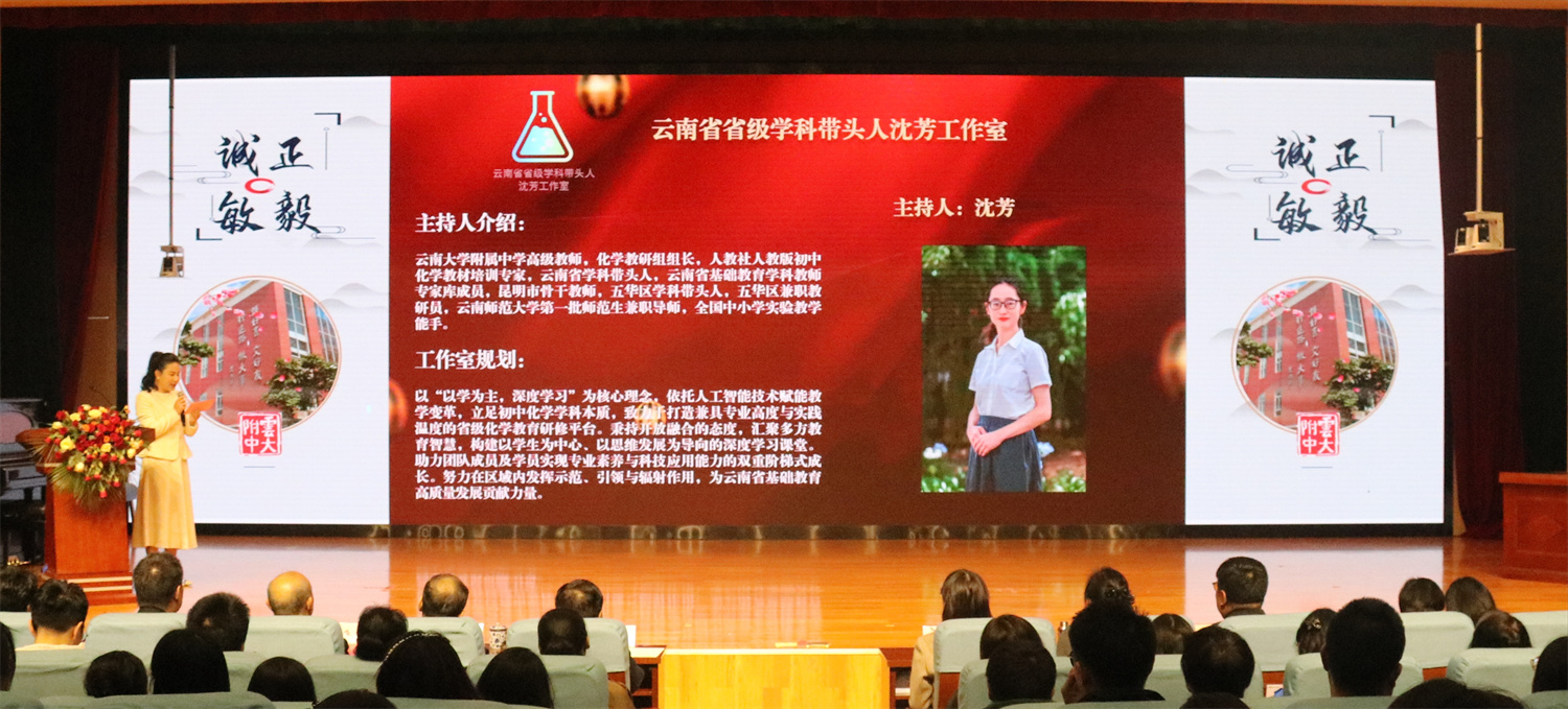 本次集中挂牌的四个工作室主持人王智、沈芳、胡晓雪、马超,均是云大附中及云南省基础教育领域的学科领军人物。四个工作室共吸纳了来自全省14个地州市的257名教师,构建起一个庞大而富有活力的教研共同体,彰显了云大附中在云南省基础教育领域突出的示范、引领、辐射作用!