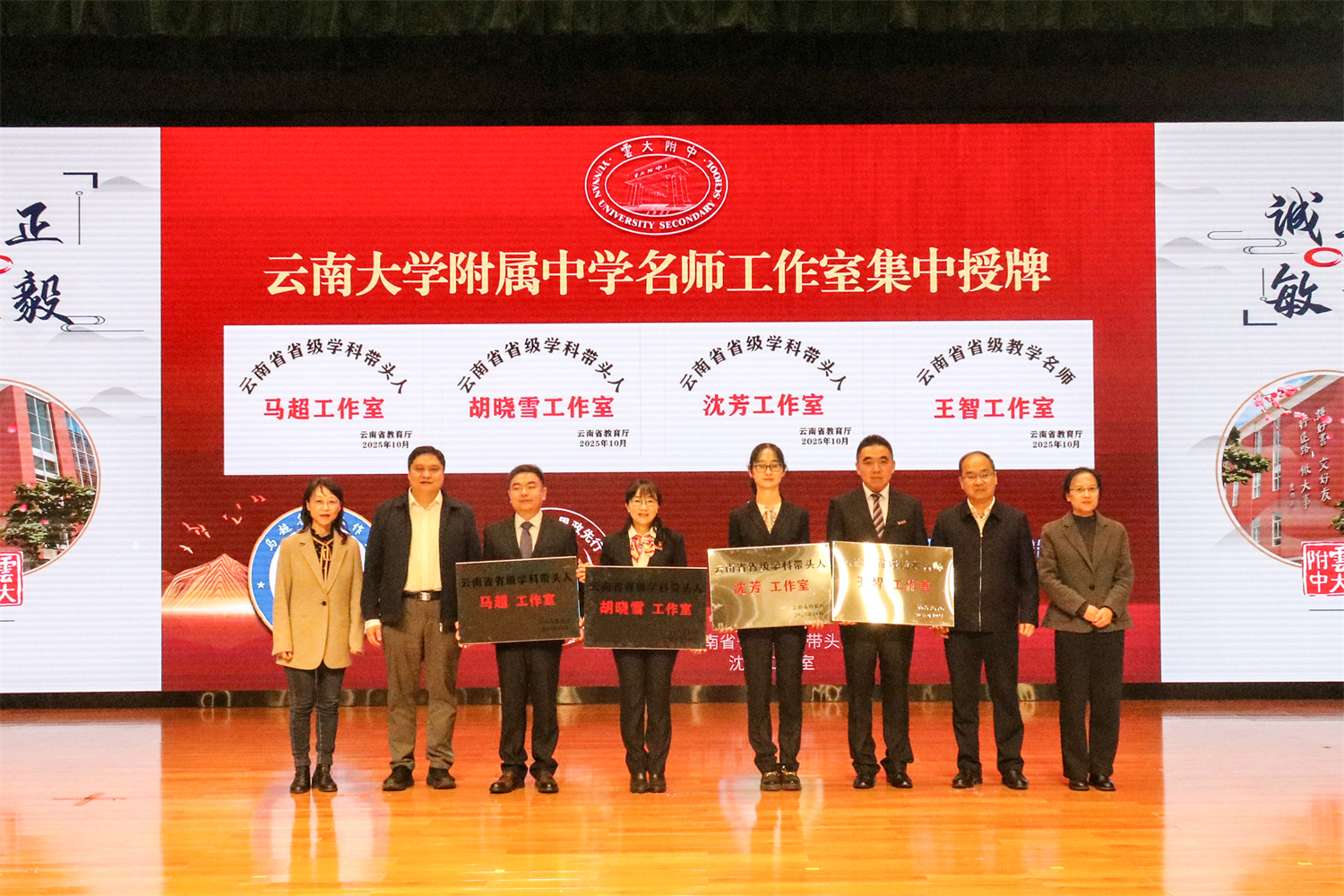 截至2025年10月,云大附中已成立教育部“双名计划”樊静萍教学名师工作室、云南省基础教育教学名师樊静萍工作室、云南省基础教育领域教学名师张砾月工作室、云南省基础教育领域教学名师杨丽萍工作室、云南省基础教育领域教学名师黎一苇工作室、云南省基础教育领域教学名师孙燕杰工作室、云南省基础教育领域教学名师王智工作室、云南省基础教育领域学科带头人沈芳工作室、云南省基础教育领域学科带头人胡晓雪工作室、云南省基础教育领域学科带头人马超工作室,共计10个省级以上名师工作室。在各级领导的持续关怀中,在名师的引领与全体教育同仁的携手奋进下,云大附中乃至云南的基础教育图景,必将愈发灿烂辉煌。