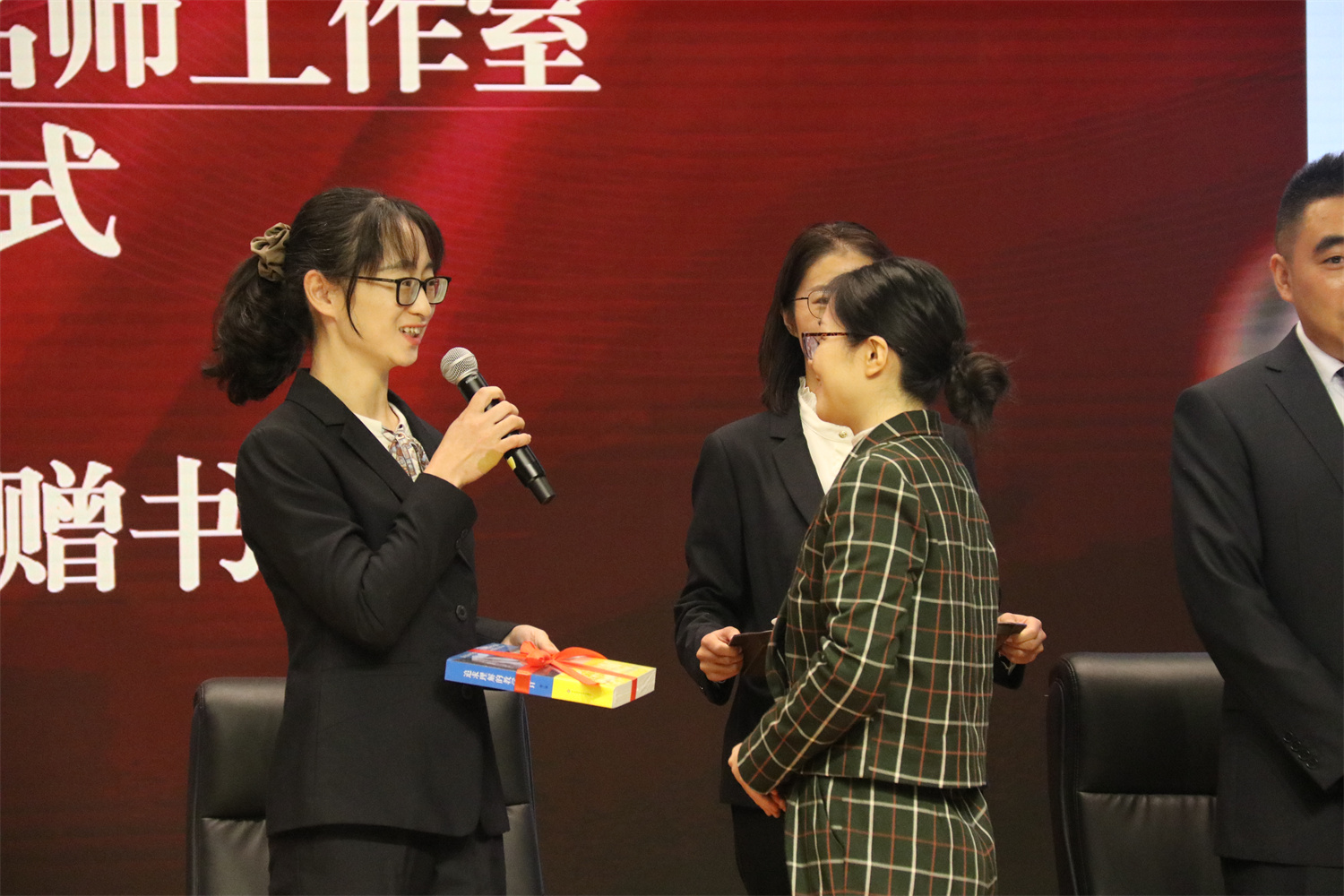 随后,胡晓雪代表4位名师工作室主持人发言表态。她表示,深感“名师”二字不仅是荣誉,更是沉甸甸的责任。她代表全体主持人郑重承诺:将以身作则,深耕教学一线,带领成员聚焦课堂改革与课题研究;将搭建交流平台,促进学科间的思维碰撞与融合创新;将牢记教育初心,把工作室打造成培养骨干教师的“摇篮”、产出优质成果的“阵地”和服务教育实践的“窗口”,不负信任与期望。