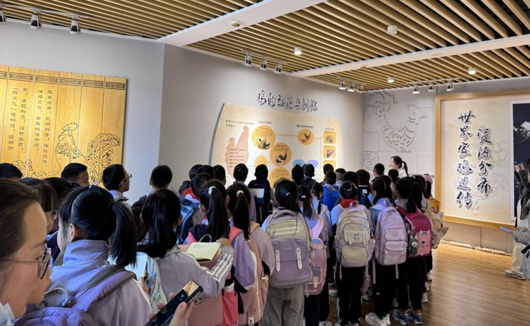 在鸡文化博物馆内,同学们在讲解员引导下,了解了从远古先民驯化原鸡的历史和不同朝代家禽养殖技艺。展区的品种分布图还详解了鸡种的地域分布规律,其中云南武定鸡、茶花鸡等特色品种因适配高原气候的独特习性格外引人注目。再到近现代通过杂交育种、基因筛选实现品种改良的实物与数据展示,让同学们系统掌握了养殖历史脉络。