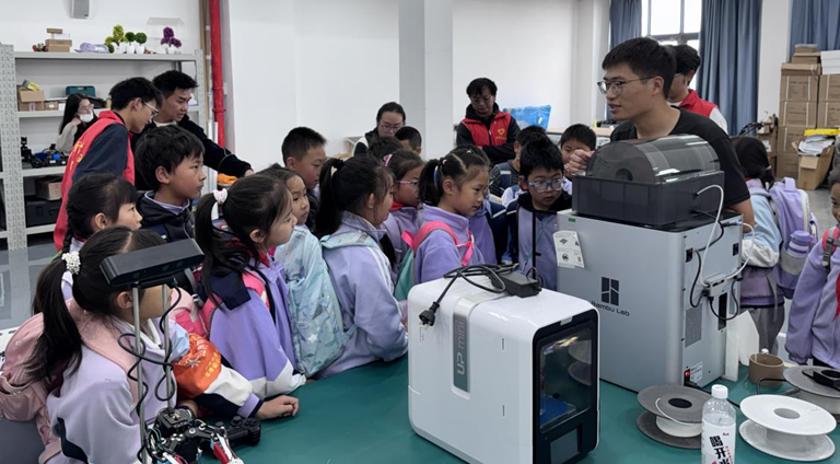 在穿越机演示环节,随着设备沿预设轨道完成穿梭、翻转等一系列高难度动作,现场响起热烈掌声,同学们纷纷用笔记或影像记录这一精彩瞬间。3D打印展区前,同学们近距离观察了农耕工具模型的打印过程,当看到塑料耗材逐步成型为精准的模型构件时,不少同学主动向志愿者请教技术细节。从田间管理机器人到物流转运机器人,各类智能装备全方位展现了现代农业科技的发展成就,使同学们深刻领悟到“科技是第一生产力”在农业领域的生动实践。