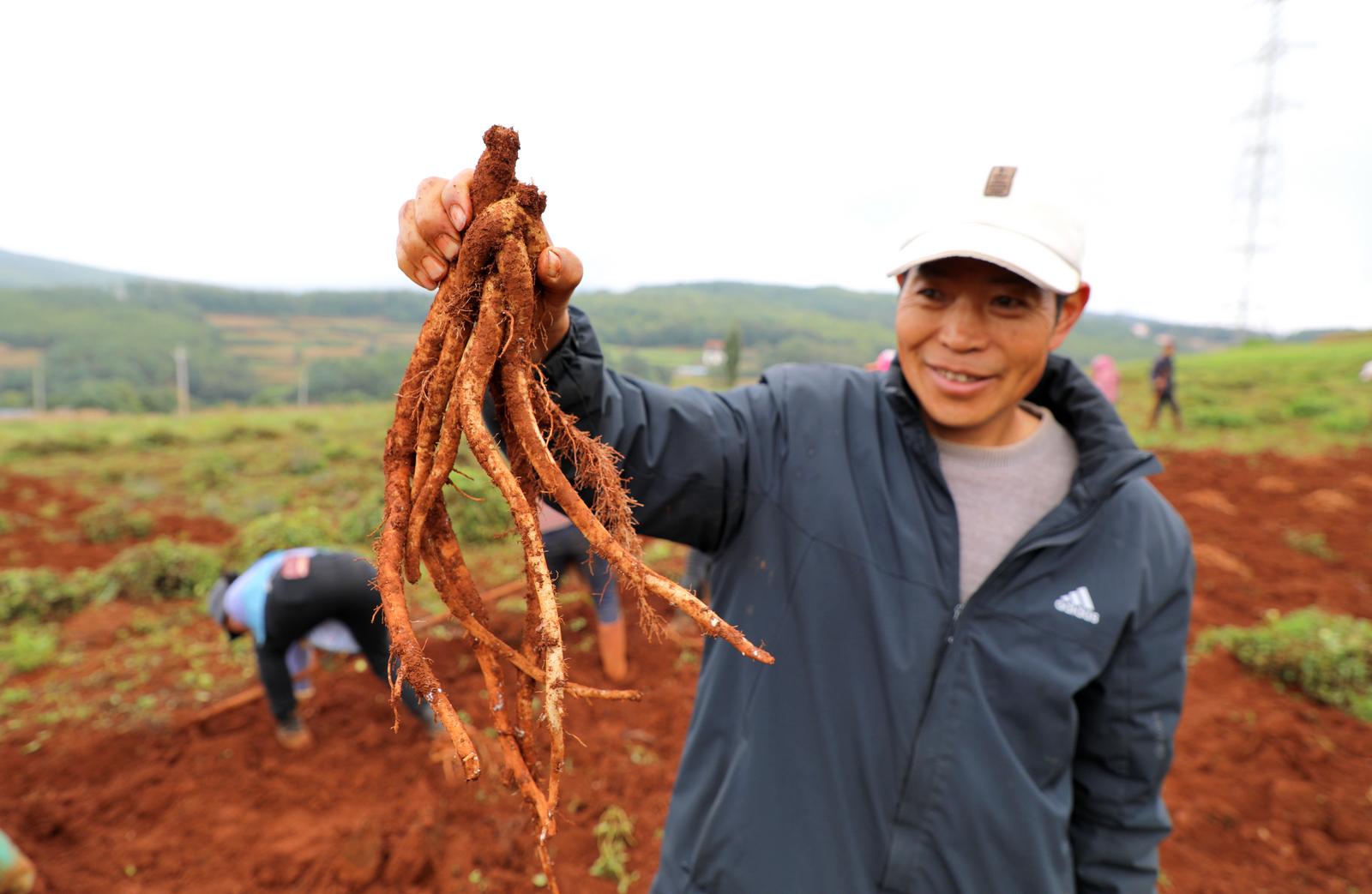 四川客商舒丹,如今已是柴山村的“常驻人口”。八年前,正是他将党参从贵州威宁引进到火红乡。看中这里肥沃的土地和适宜的气候,他坚信这片土地能种出好党参,并销往东南亚乃至更远的市场。