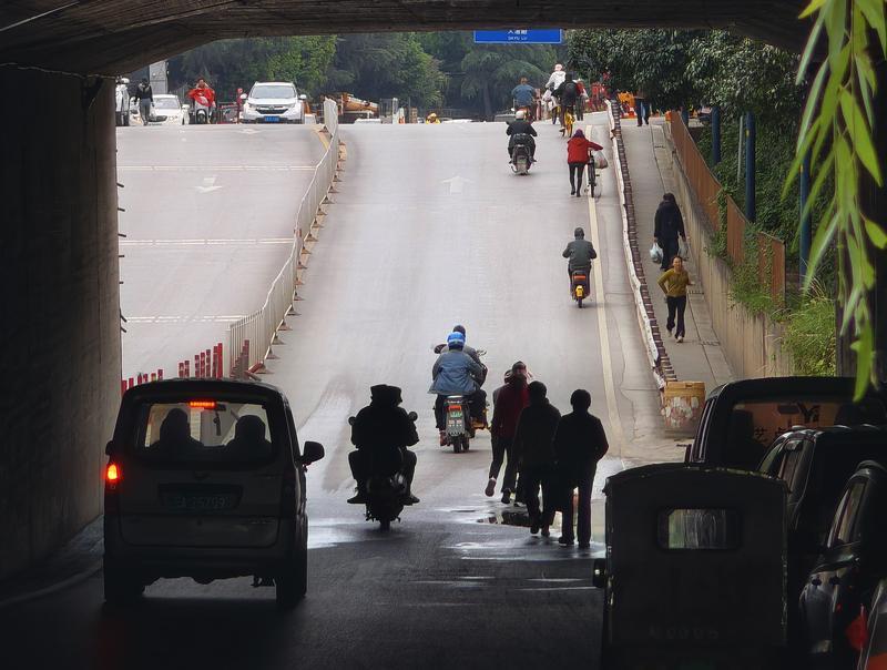 近日,有市民向开屏新闻反映,自己经常路过大渔路下穿成昆铁路的通道。该处明明建有4条通道,却只开放了2条供行人及车辆通行,导致人车混行,存在安全隐患。希望将另外两条通道也开放使用。