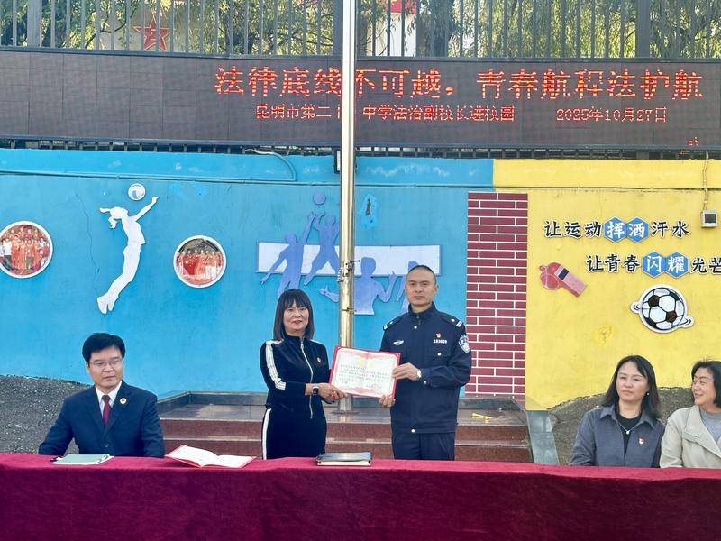 为进一步筑牢学生法治安全防线,增强法治意识,10月27日,昆明市第二十一中学举行法治副校长聘任仪式暨法治教育进校园活动。