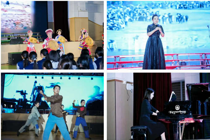 昆十中教育集团校长谢晓玲在音乐会欢迎致辞中深情说道:“纪念抗战胜利” 与“庆祝建校”相遇,这场音乐会便有了更特殊的意义 —— 它不只是一场艺术盛宴,更是一堂给全体十中人的“思政课”:对老师而言,是要牢记“立德树人”的使命,把英雄精神融入日常教学的点点滴滴;对同学而言,是要从旋律里读懂历史,明白“少年强则国强”的责任重量;对校友而言,是要回望母校的育人初心,无论走得多远,都不忘“爱国、励志”的青春底色。