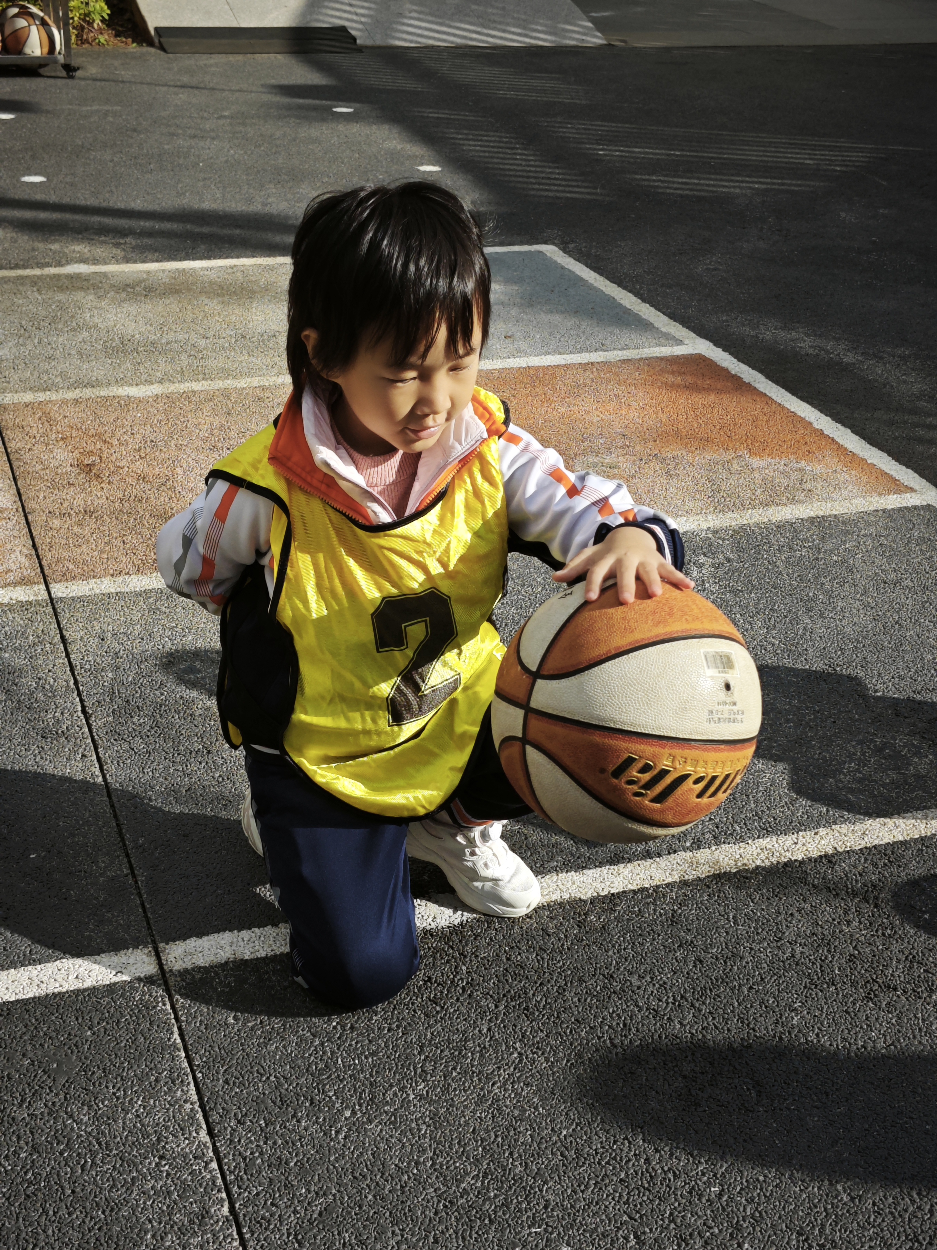 个人赛中,孩子们接连挑战“蹲姿拍球”“圈内拍球”“拍球套圈”三大趣味项目。“蹲姿拍球”项目中,小运动员们屈膝半蹲,手臂灵活摆动,专注的神情与清脆的拍球声交织成独特的“运动交响曲”;“圈内拍球”环节,孩子们在限定区域精准控制球的落点,灵活移动间尽显空间感知力的提升;“拍球套圈”项目则考验手眼协调与反应速度,边拍球边投掷的动作引得现场欢呼声此起彼伏。