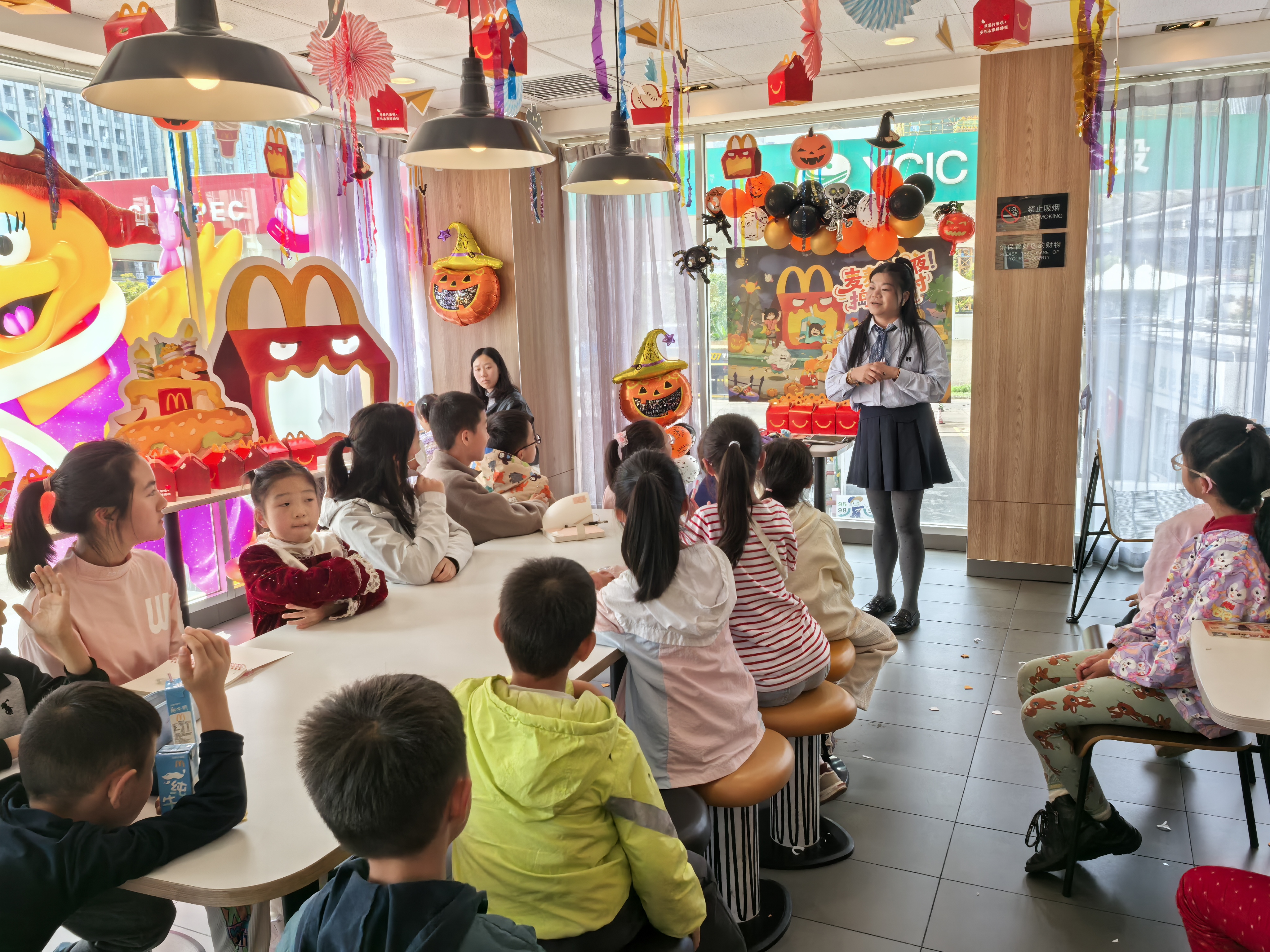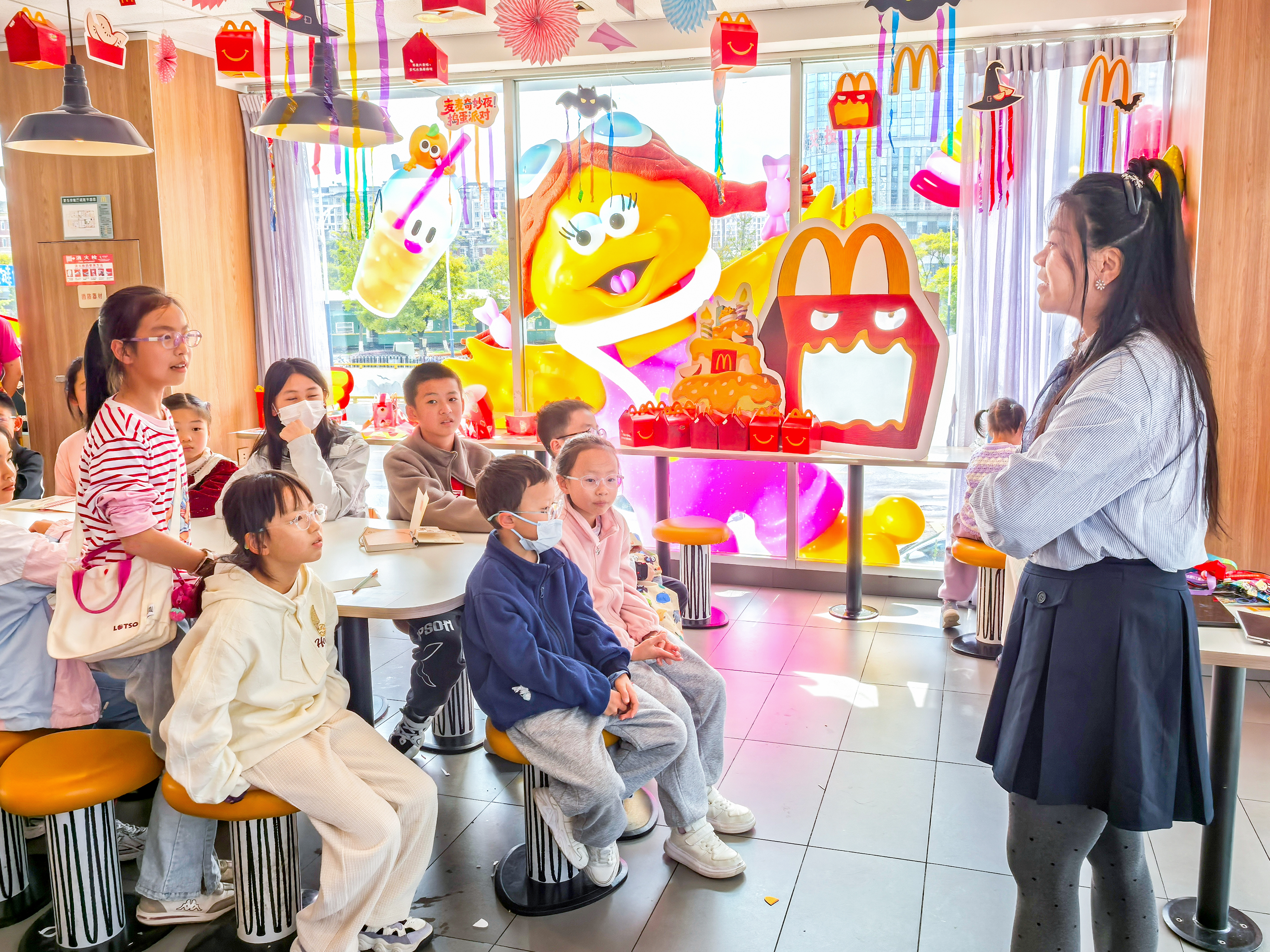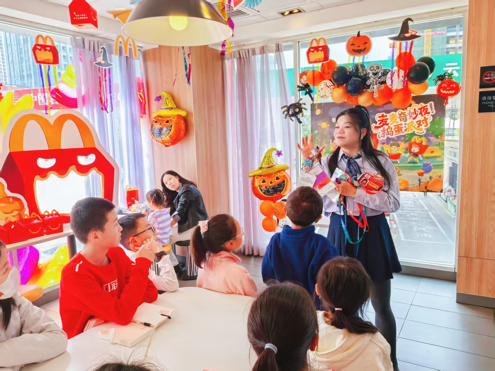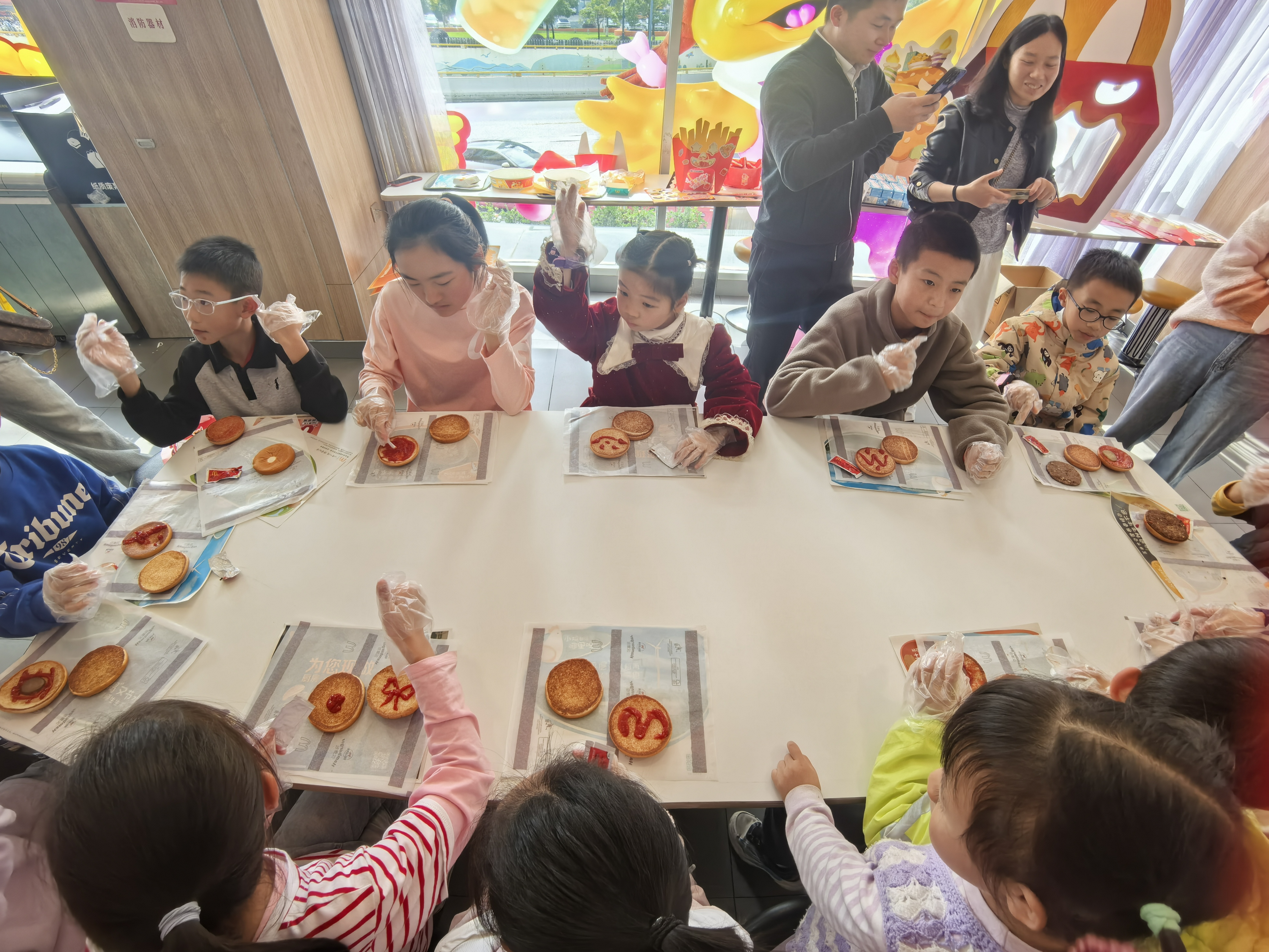活动伊始,小记者们在工作人员的引导下,化身"小小汉堡师"。在麦当劳员工的耐心指导下,孩子们认真摆放食材、涂抹酱料、叠放配料,亲手制作出属于自己的专属汉堡。伴随着香气弥漫的午餐时光,现场洋溢着欢声笑语。孩子们一边享用"麦麦奇妙夜捣蛋派对"主题套餐,一边交流制作心得,为接下来的环节提前预热。