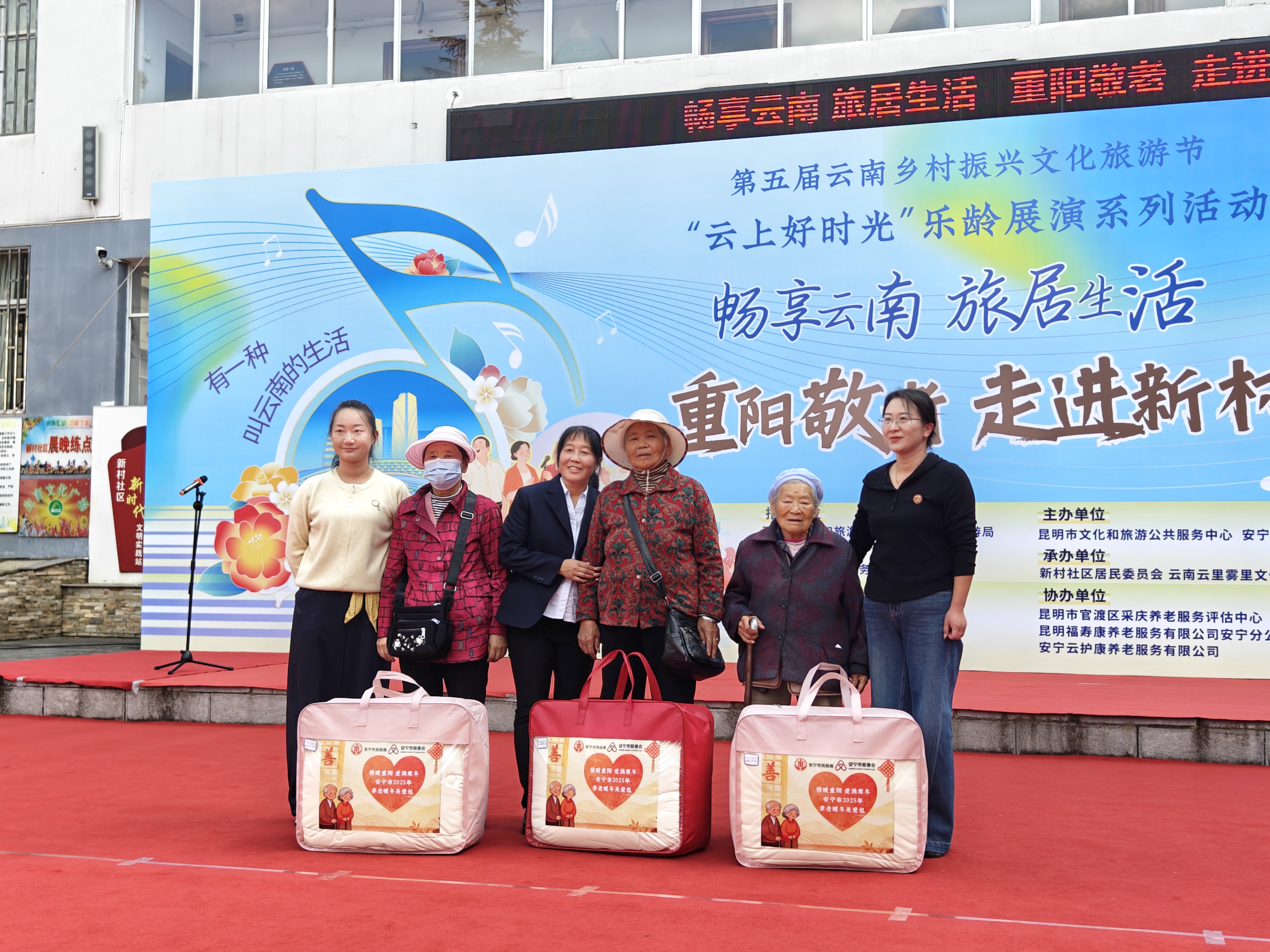 10月28日,第五届云南乡村振兴文旅节暨“云上好时光”乐龄文化系列活动之“重阳敬老·走进新村”,在安宁市金方街道新村社区新时代文明实践广场举办。活动旨在弘扬中华民族尊老敬老的传统美德,在重阳佳节到来之际,推动“有一种叫云南的生活·旅居云南”品牌建设。